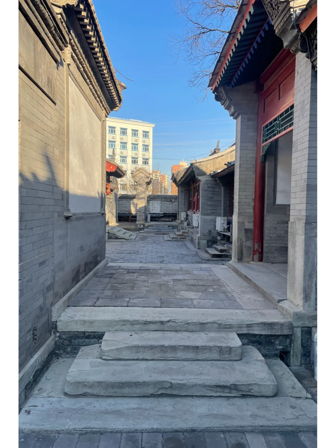 北院头院并排两个内院的垂花门。内院和外院之间墙壁采用漏窗,这样采用借景形式。