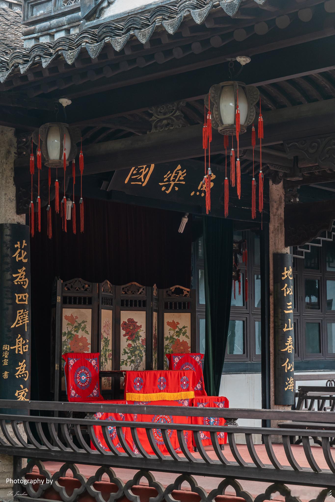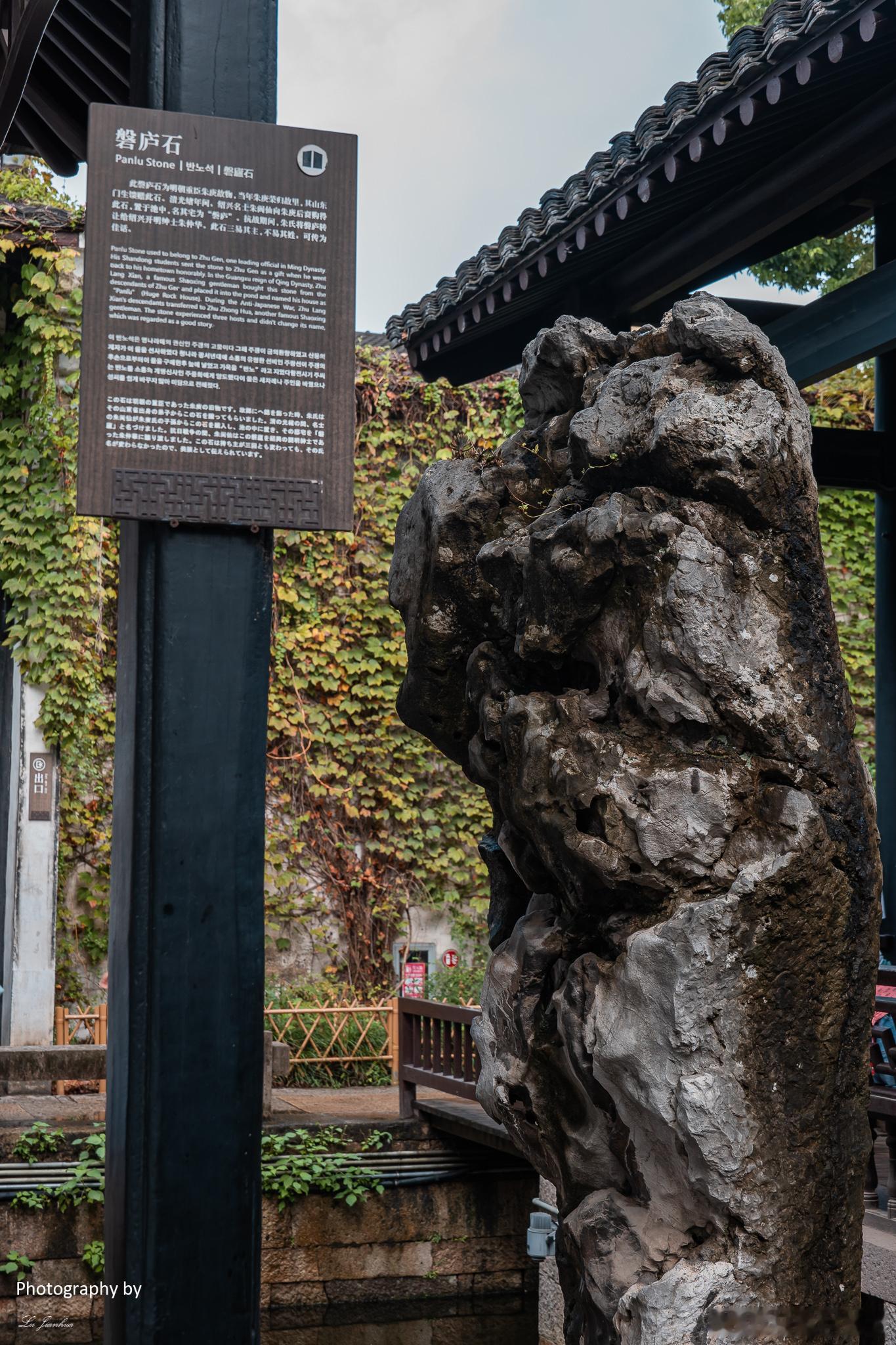 浙江绍兴鲁迅纪念馆的西北侧,有一座“鲁迅笔下风情园”,当地人也称之“朱家台门”。绍兴“台门”,也就是具有一定规模、封闭独立的院落。朱家台门,以前又称“老磐庐”,源于院落中一块名叫“磐庐石”巨石,据说该石为明朝官员朱庚的故物。风情园中除了这块石头外,还有水榭、戏台等,还有百年罗汉松、盘槐、红梅、绿萼梅等名贵花木。