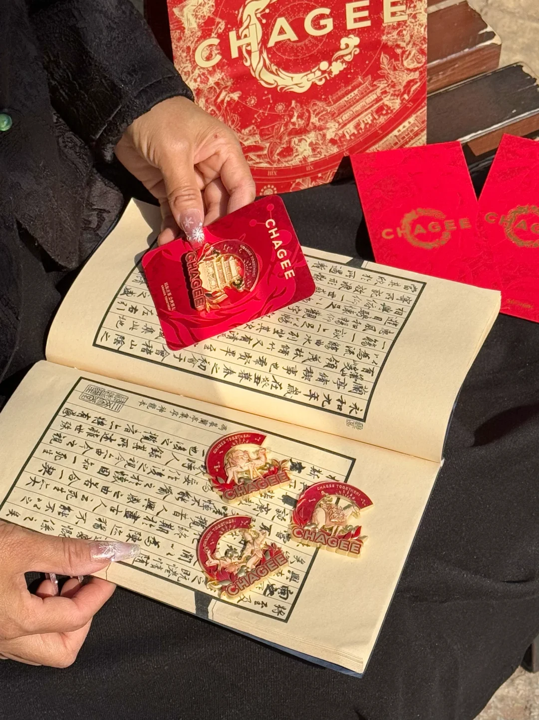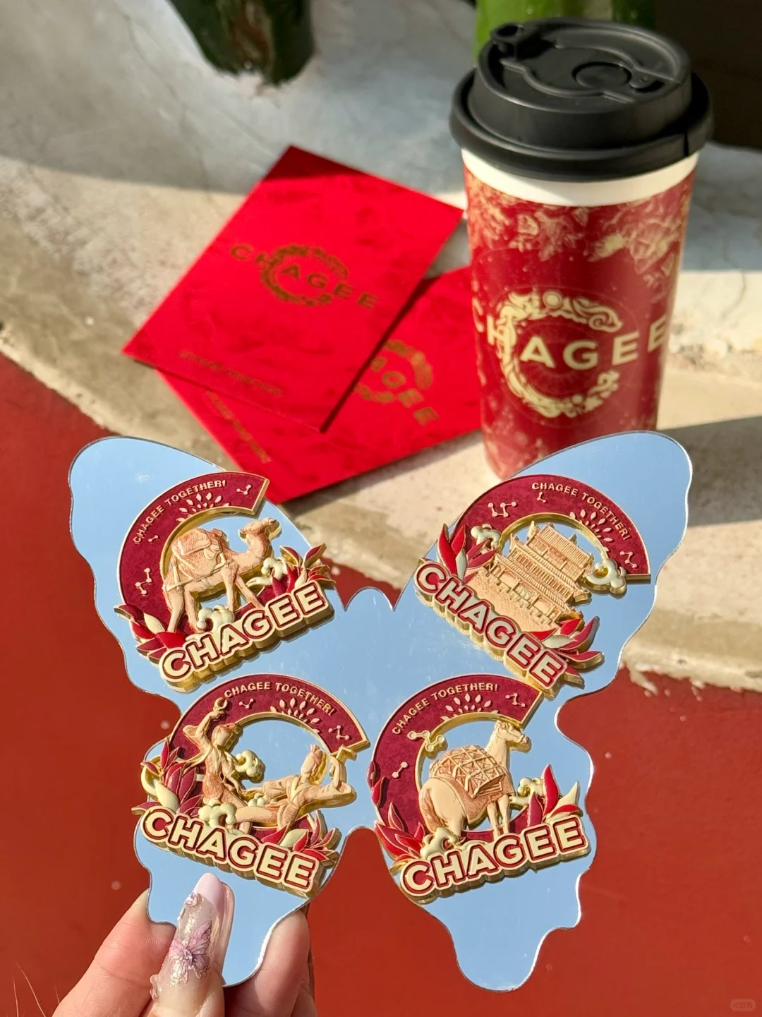 啊啊啊啊真的有被姬姐蛇年新皮肤惊艳到! 灵蛇启运就冲这寓意。。把我拿捏的ss的🥹 周边有4款冰箱贴、2款红包、CHAGEE启运杯和纸袋…… 都设计的好精致!!每一个都好绝!!!! 用纸袋做成蝴蝶灯笼🏮简直不要太米555 冰箱贴伏羲女娲、嘉峪关、丝路驼队、茶马古道4款元素设计,也太有收藏意义惹!! 红包有女娲&伏羲2款图案,上面浮雕设计贼高级!手感还蛮好的哎… 红里红气的好喜庆感觉在过年了🧨 这次过年聚会定要朋友一起喝上开启新年好运!!!
