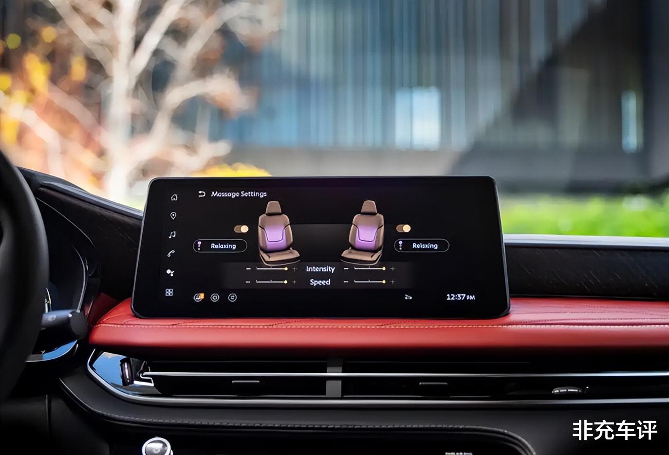 车内安排了无线充电面板,前排座椅带加热、通风和按摩功能,甚至头枕里也塞了音响。
