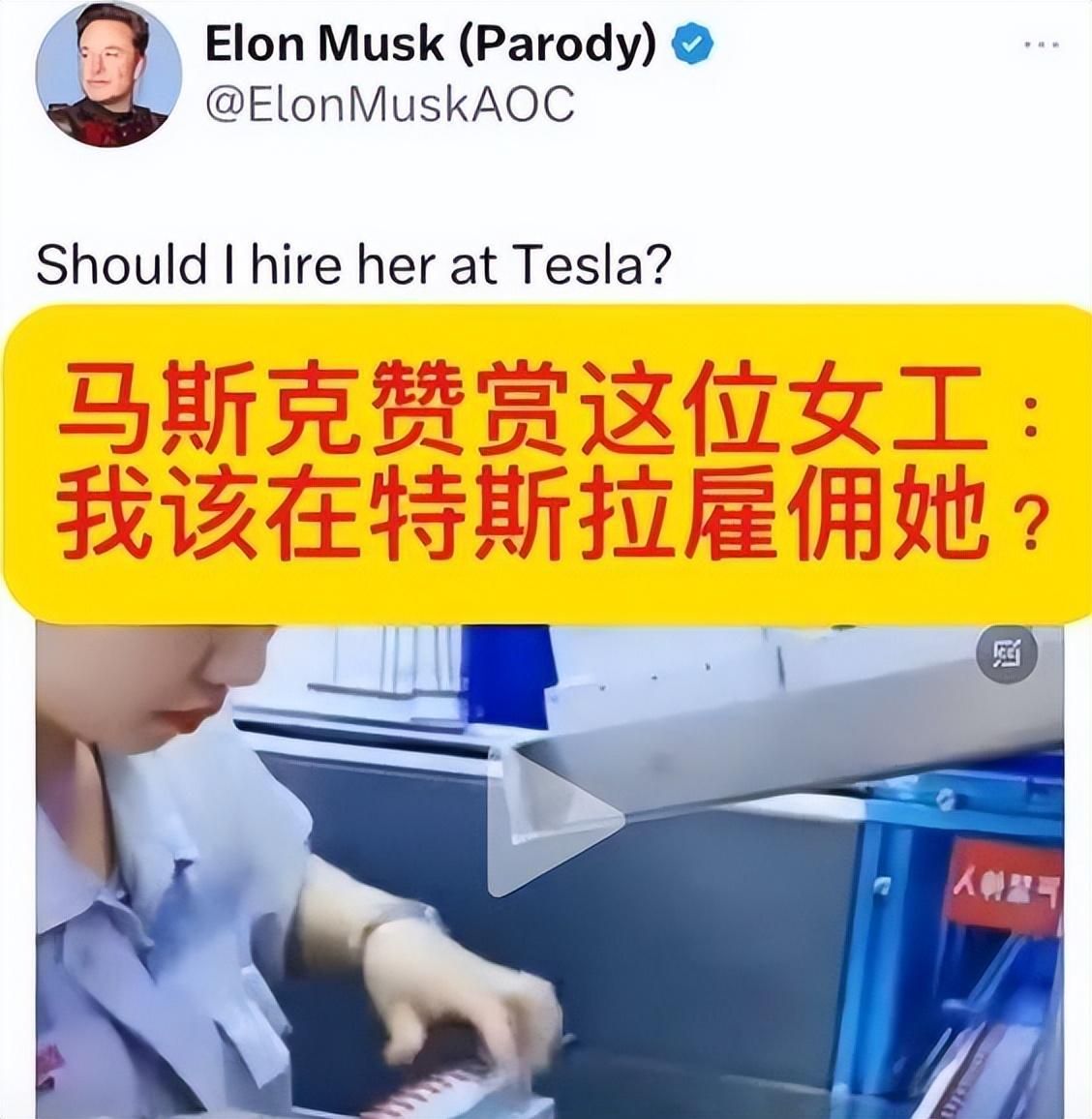 马斯克在视察了中国工厂后,对中国女工的非凡技艺表示钦佩,并幽默地提出考虑将其纳入特斯拉团队的可能性。