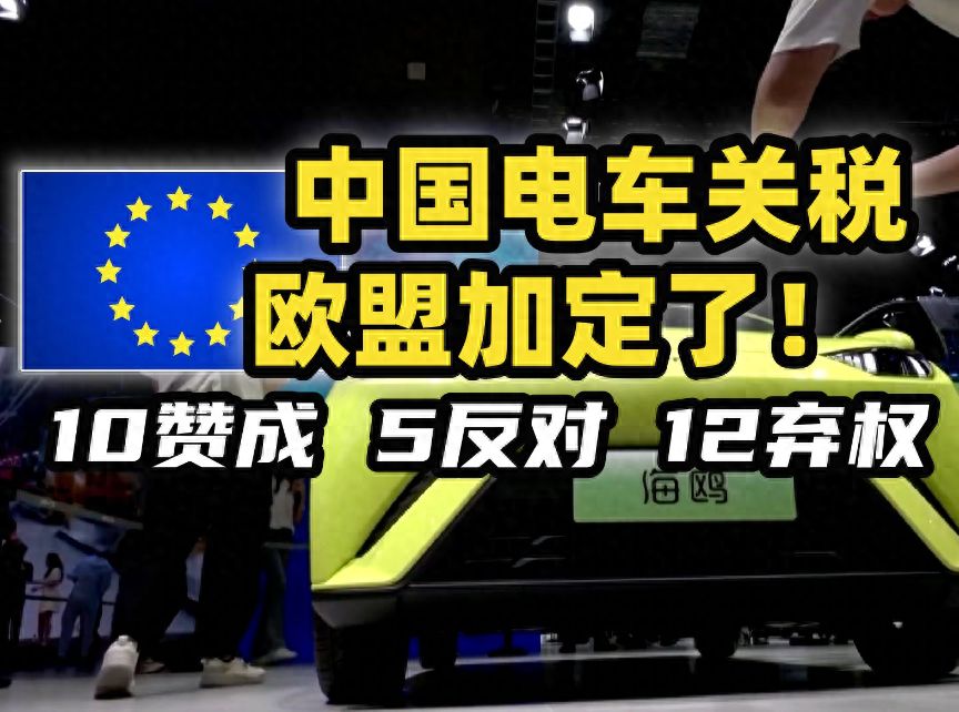 10月4日,欧盟表决通过了对中国电动汽车加征关税的提议,税率从10%的基础上,再加征从7.8%到35.3%不等的关税,最终中国出口欧盟的汽车关税为17.8%—45.3%。