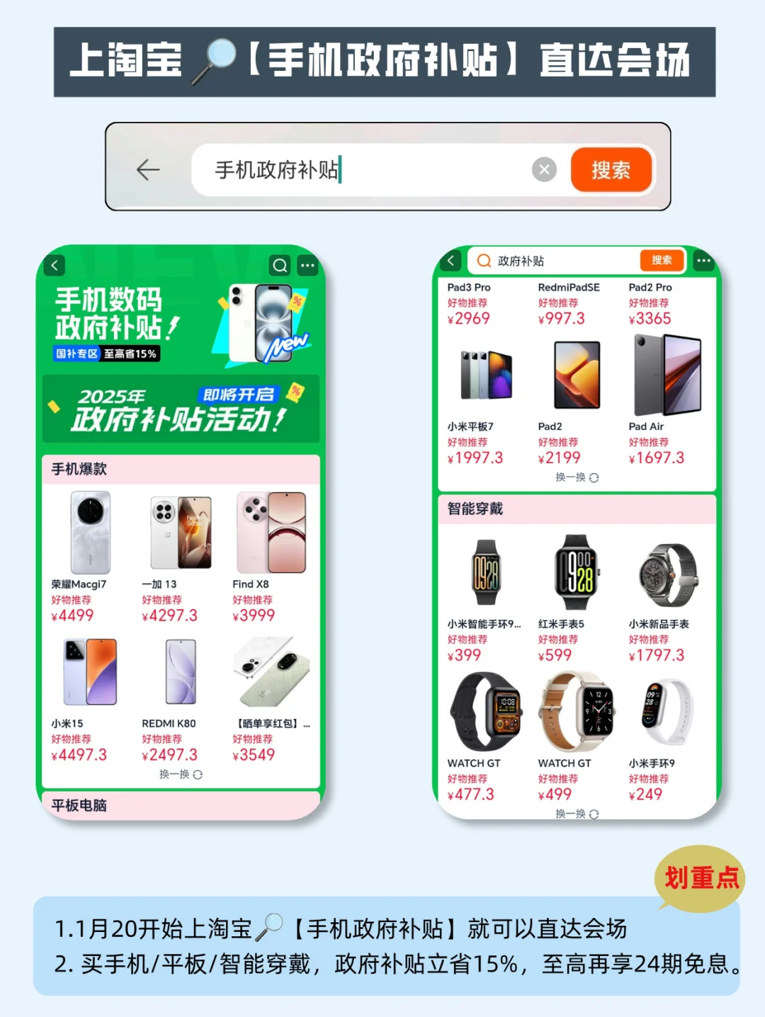 👉1月20号天猫开始国补,其中包括了手机、平板、智能穿戴等3c数码
