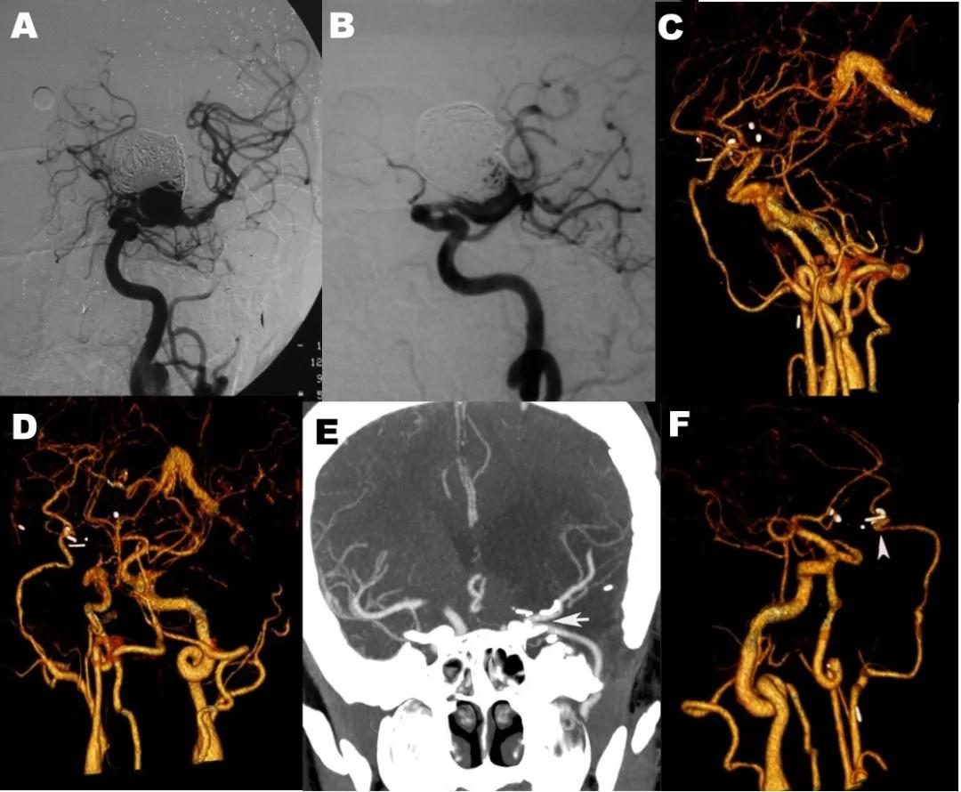 典型病例:49岁女性患者,因突发头痛7 d就诊,CTA检查显示右侧颈内动脉前壁小泡状动脉瘤。根据影像学特点,采用直接缝合技术,术后无明显不良反应,恢复良好。