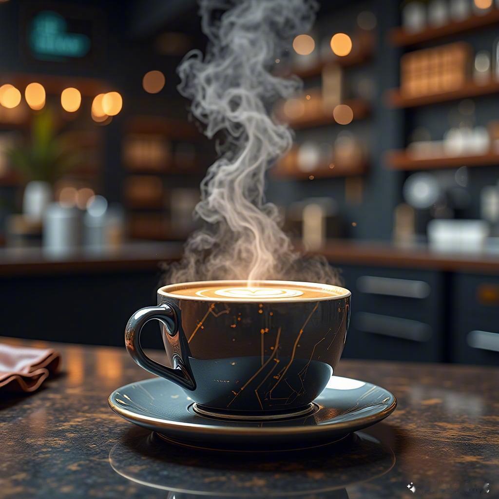 未来的咖啡时光☕️✨,科技与美食的完美结合,喝一口,幸福感满满💖! 未来科技
