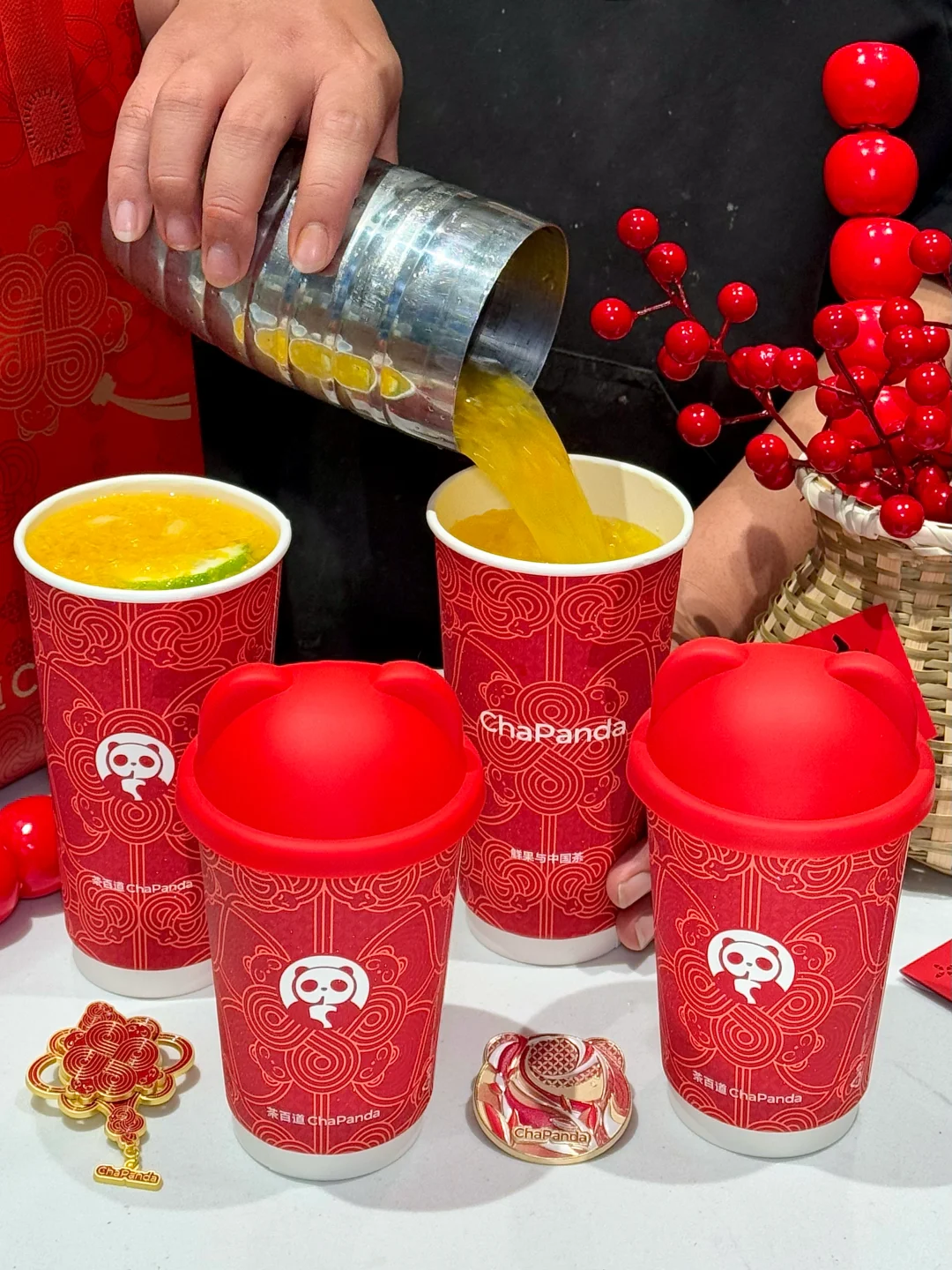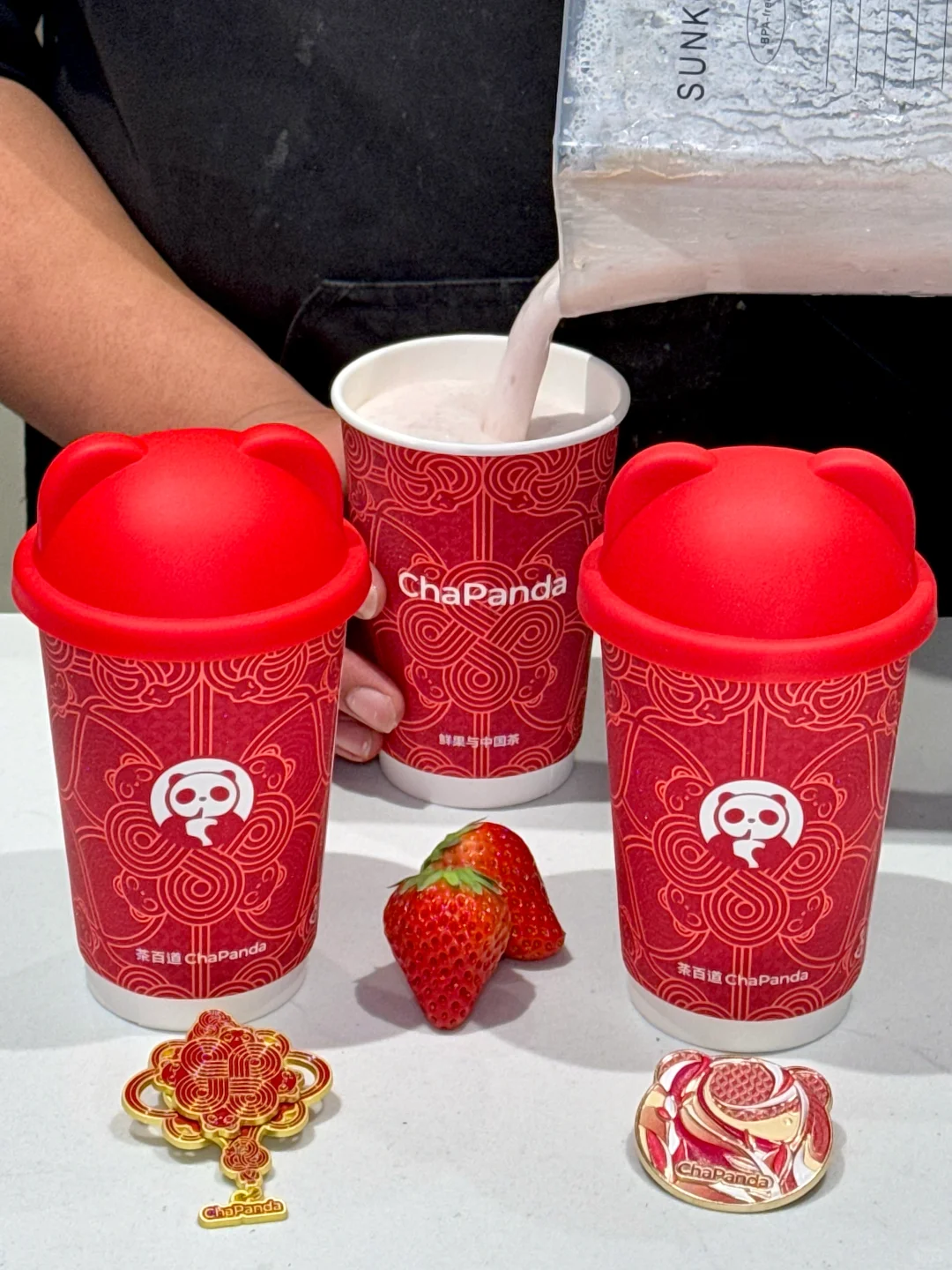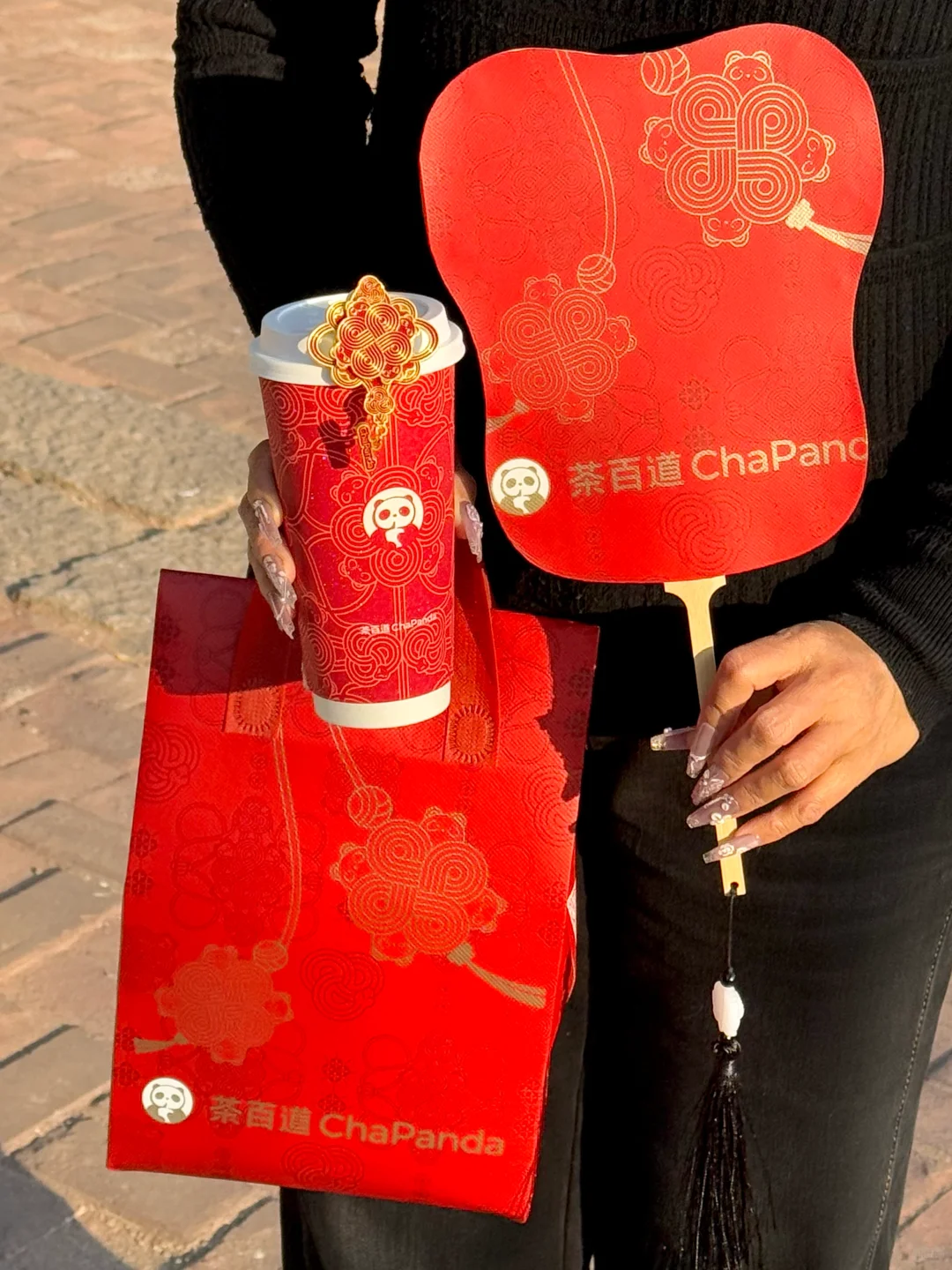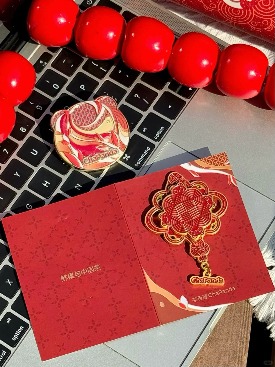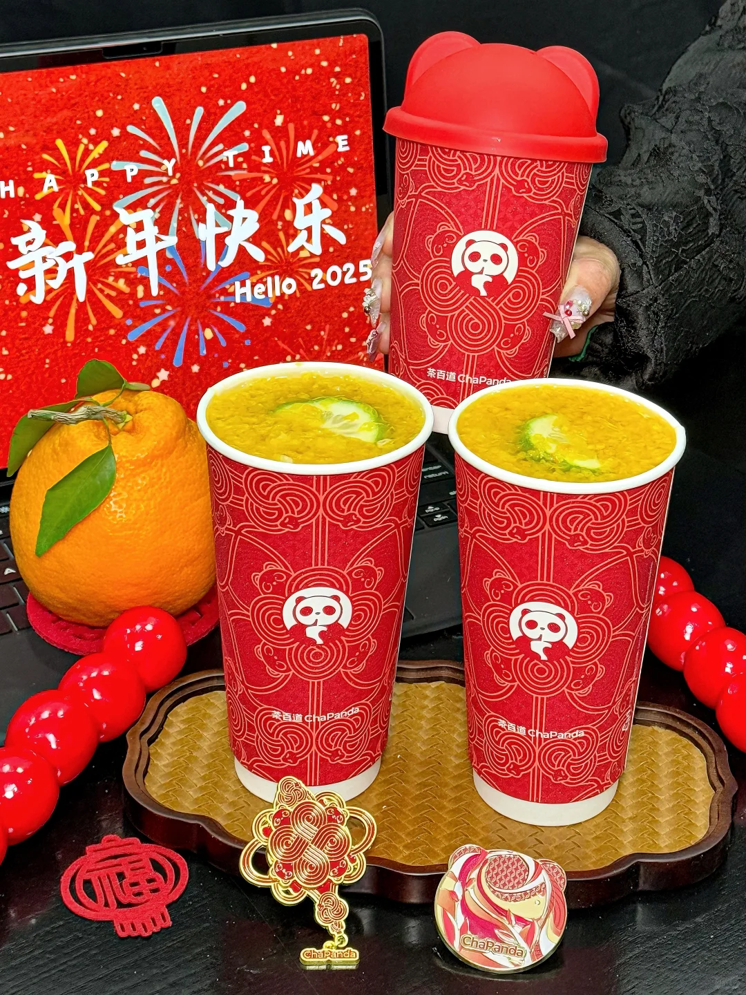 茶百道!!给我出来挨夸!! 新年徽章也太太太太好看了!!中国结还能旋转起来真的好治愈!收藏党幸福了🥹😭😭 还有新年杯和保温袋!每一个都带有中国结、铜钱纹元素好国风!!! 1.28-2.4!只要点指定双杯套餐就能get!! 👉🏻新年徽章or茶茶小耳朵!硅胶手感也贼好! 把它盖在新年杯上好好看啊!!! 加上杯身blingbling的细闪尊嘟很高级! 点了两杯还不戳的!推荐给大家!!! 🍊蜀实耙耙柑:耙耙柑果肉在嘴里跳跃!炒鸡清爽!!重点是冰的热的都好喝!过年聚会真的离不开了。。。 🍓活菌·草莓鲜奶昔:奶fufu的草莓味好好喝!!酸酸甜甜的口感ju丝滑!为什么只有中杯啊啊啊😡😡