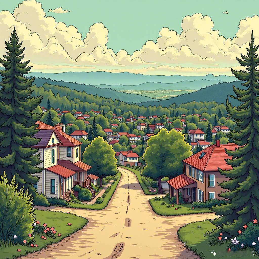 家乡的美,如复古漫画般温暖,愿你我共赏这份怀旧之情,万事顺遂,幸福常在! 复古漫画 家乡美景 乡愁 (本内容由AI生成)