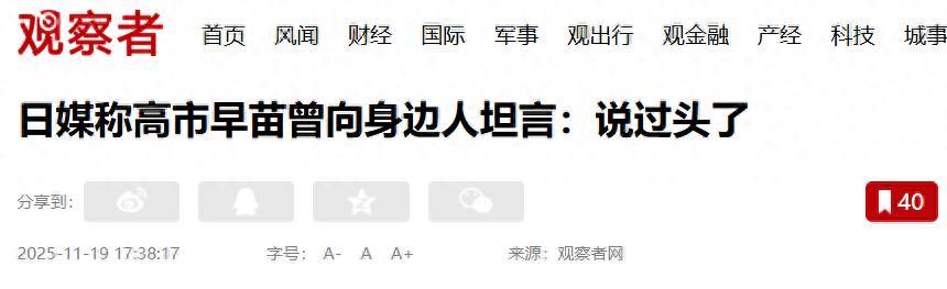 而对于“说过头”一事,高市早苗的幕僚也很自责,认为高市早苗关于台海有事“可能构成国家存续危机事态”的回答很仓促,没有充分考虑到可能会引发的风波。另外,作为首相的幕僚也指出,他们在支持高市早苗的工作上存在疏漏。
