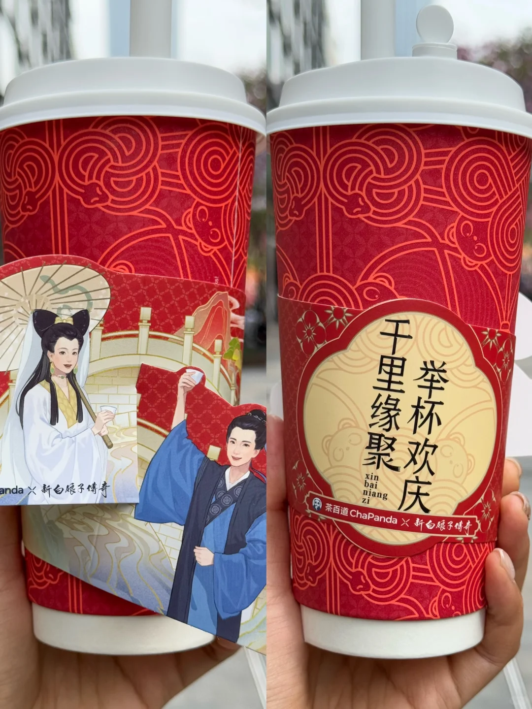 茶百道蛇年联名新白娘子!8090后满满的回忆啊😭谁小时候老爱披个白毛巾就扮白蛇我不说。 🕚1.22-1.26买蛇年来相会·欢庆双杯套餐🉐纸袋、杯套、徽章(白素贞款/许仙款)! 🥤许仙暖心特饮,元气枸杞红枣奶茶 红枣桂圆黑糖枸杞!都是好东西!冬天来上这样一杯暖fufu的奶茶🥤舒服到心坎里~ 🍊我不允许有人还不知道白娘子是四川的,蜀实耙耙柑尊嘟全是四川宝藏耙耙柑果肉!搭配茉莉茶茶底好清爽!而且冷热都好喝😋