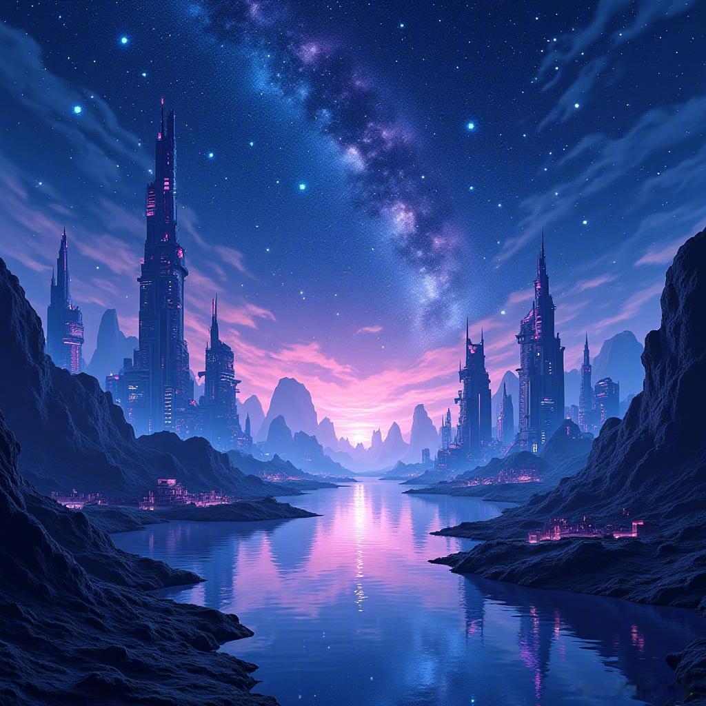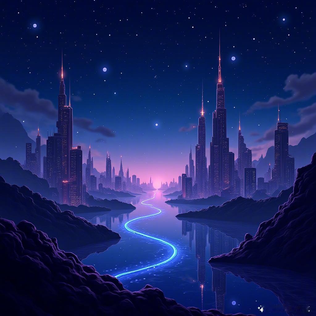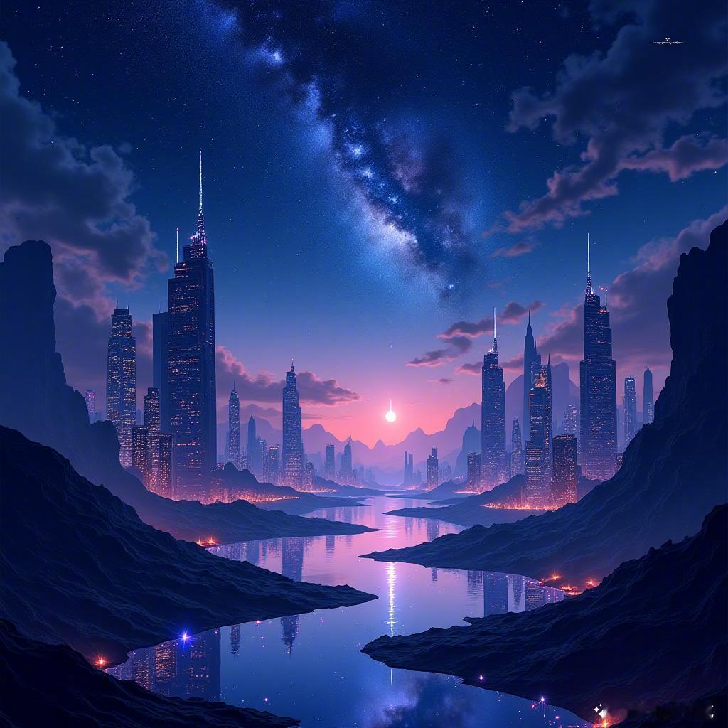 璀璨星空如梦幻般闪耀,未来城市在霓虹下静谧。每一颗星星,都是我心中的希望。💫