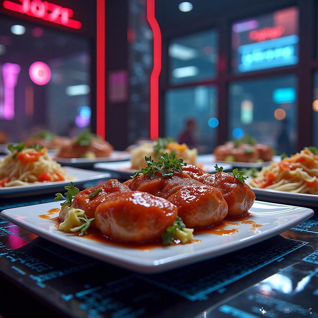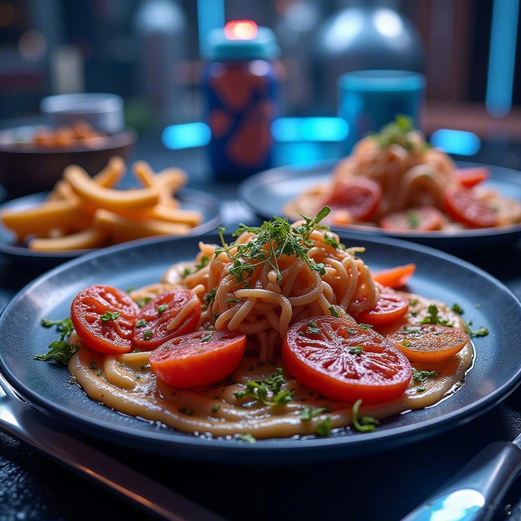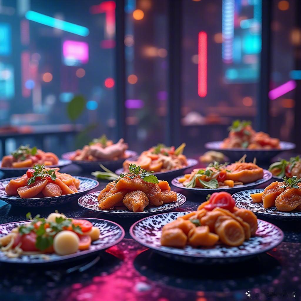 未来的晚餐,科技与美食的完美交融✨🍽️,仿佛每一口都是对未来的畅想! 未来科技 美食探索 (本内容由AI生成)