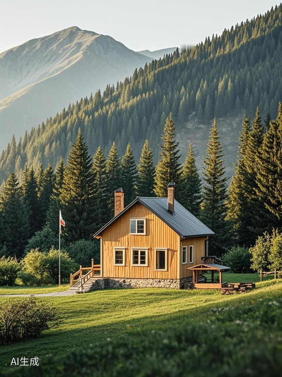 七绝 绝暖安心 向晚烟轻雪色寒, 一隅野筑暖心安。 山河万里无关我, 四季花开景