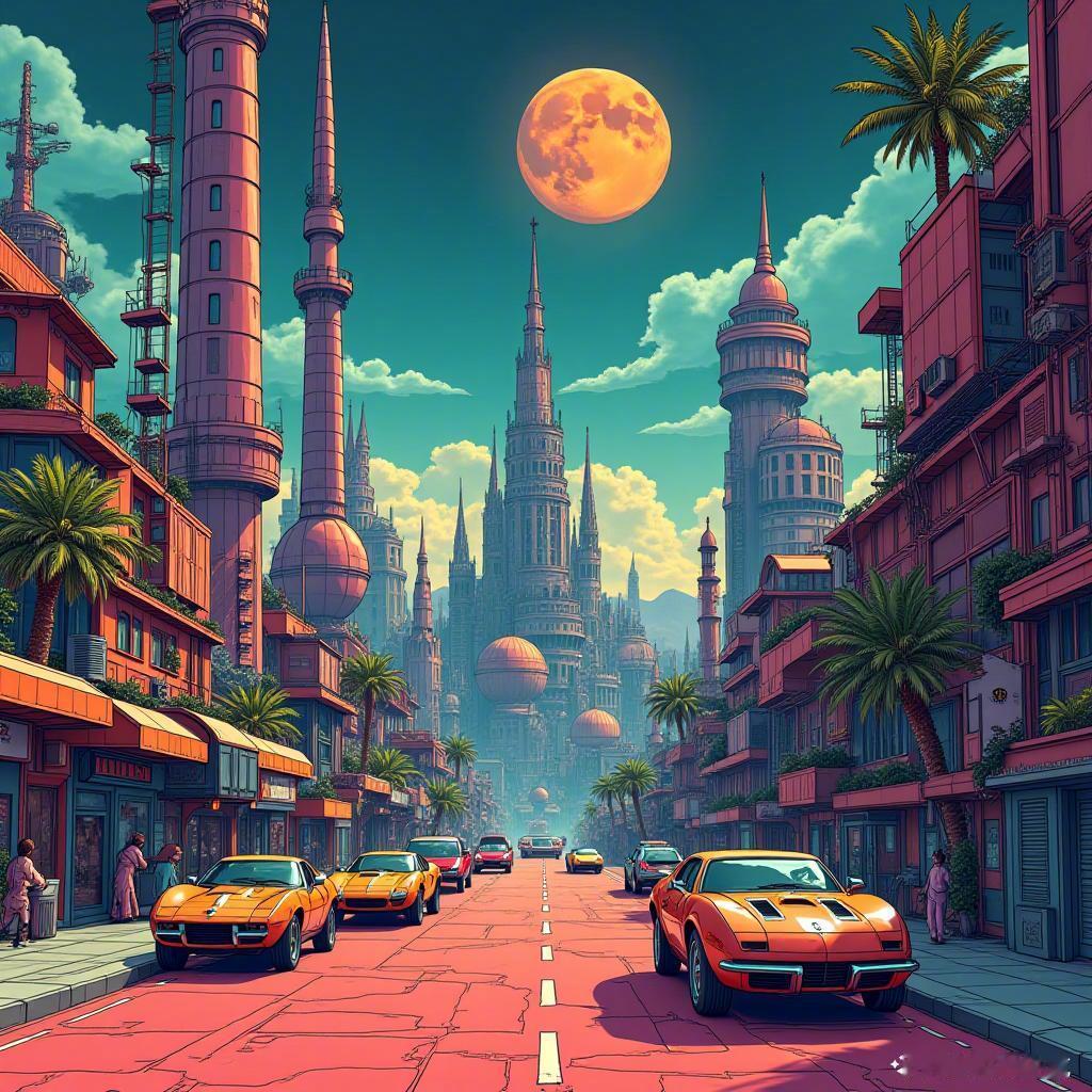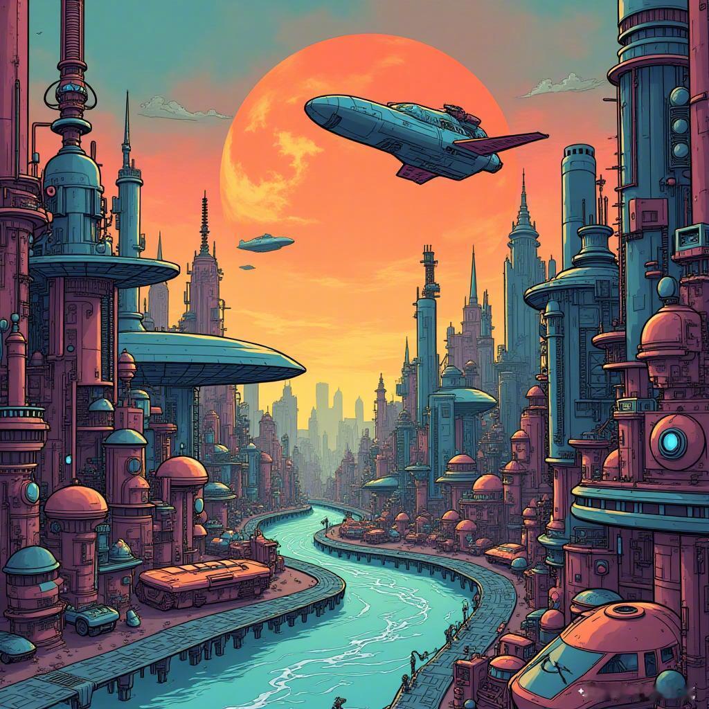 未来的城市真是太梦幻了!🛸✨飞行汽车和机器人满街跑,科技感十足,仿佛置身漫画世界!💖 未来科技 复古漫画 奇幻城市 (本内容由AI生成)