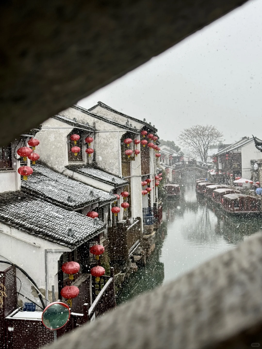 除夕将至,落雪为念 雪一落苏州就美成了诗~ 愿岁岁皆安 小得即圆满,雪落不知寒