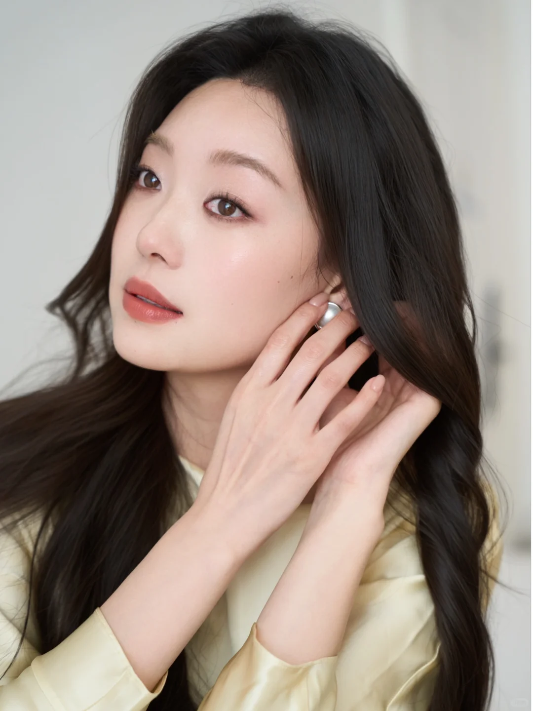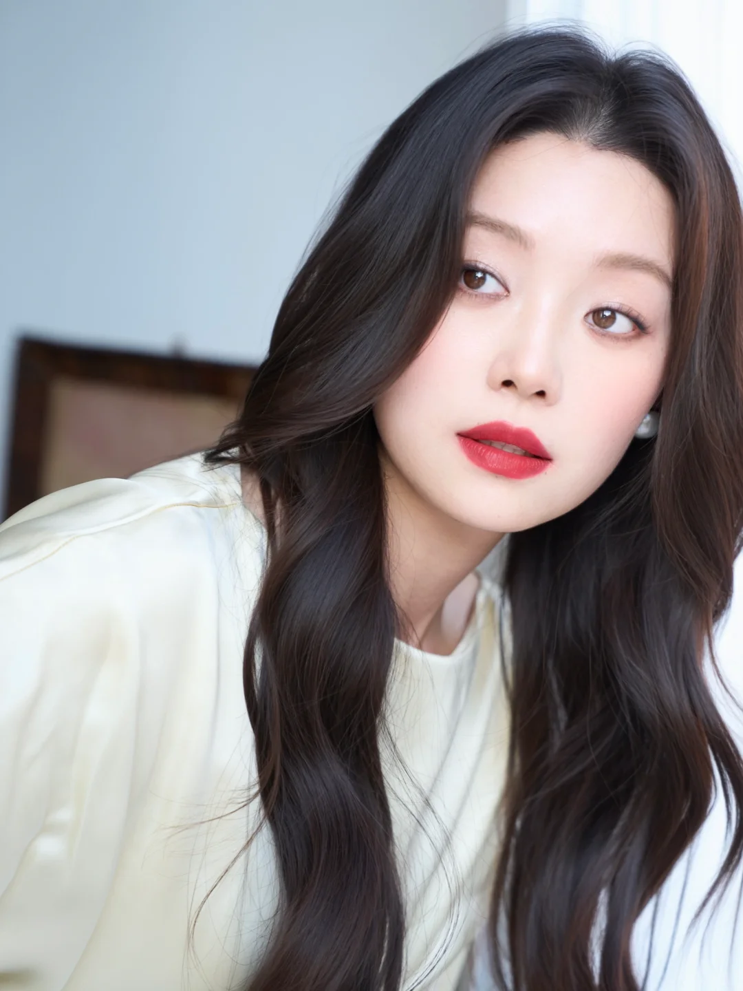 底妆上追求宛如珍珠般的自然光泽,清透且细腻,仿佛肌肤从内而外散发着光芒。唇妆作为妆容的灵魂所在,用到的是香奈儿珍珠唇膏。