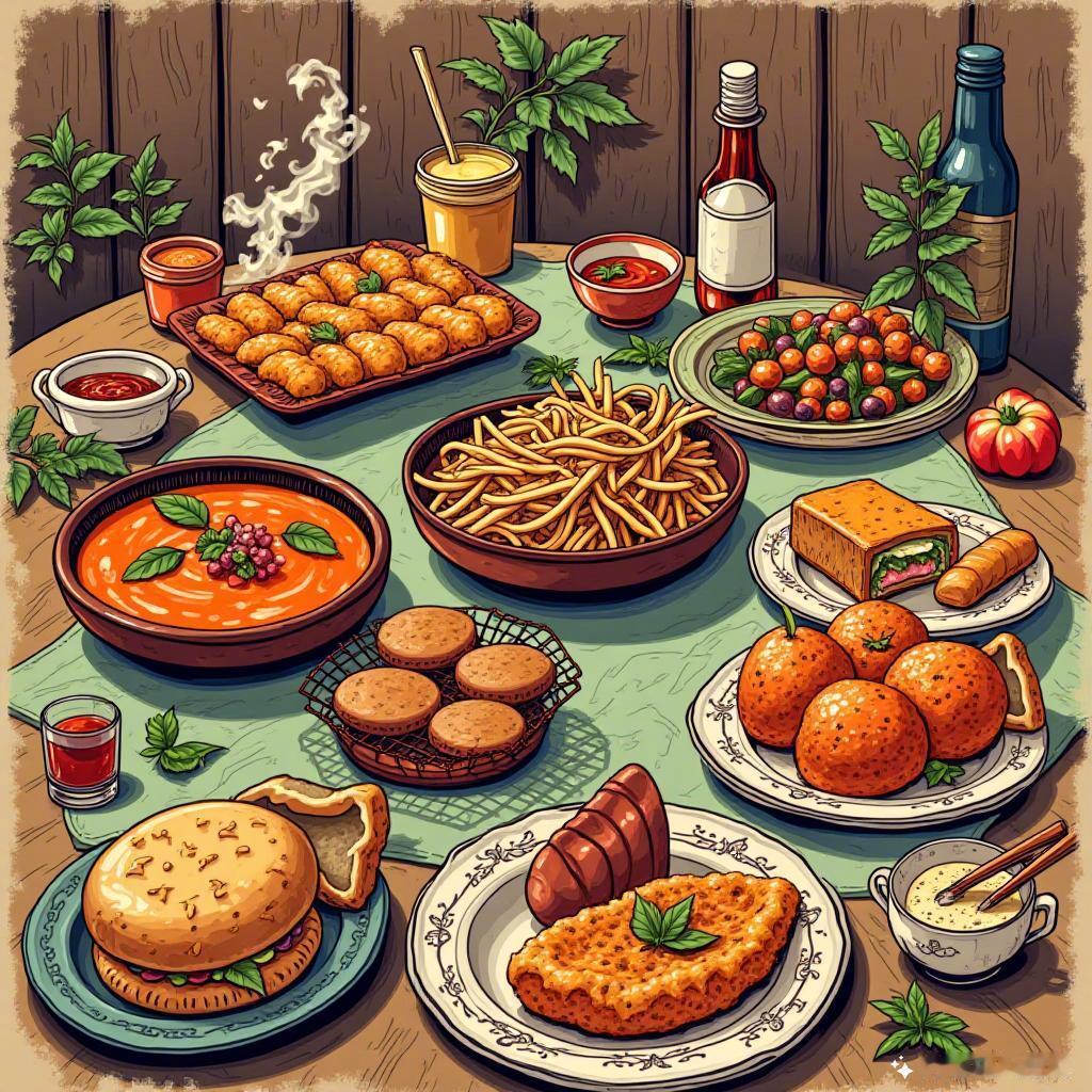 美食的魅力如同怀旧的旋律,色彩斑斓,细节满满,仿佛在诉说着温馨的故事。🍽️✨愿