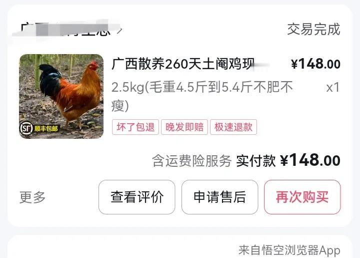 这鸡值不值, 在直播间买了一只广西的土阉鸡, 148元毛重5斤, 平均每斤29.