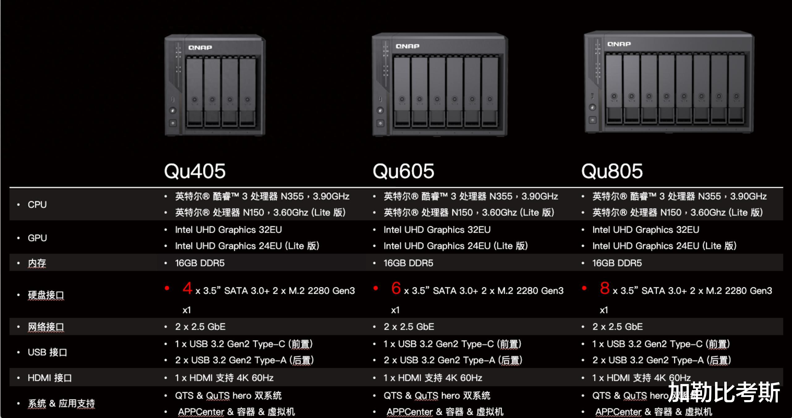 没想到这么多年过去,国内NAS市场发生巨变,但是威联通说没关系,这次6款新品直接把天花板掀了,全新的QuTS 5.2、全新酷睿i3 N355处理器、还分别有4,6,8盘位,还是双2.5G网口+HDMI,这套诚意满满的组合拳把我按在发布会椅子上反复震撼。一句话总结:Qu系列流弊。