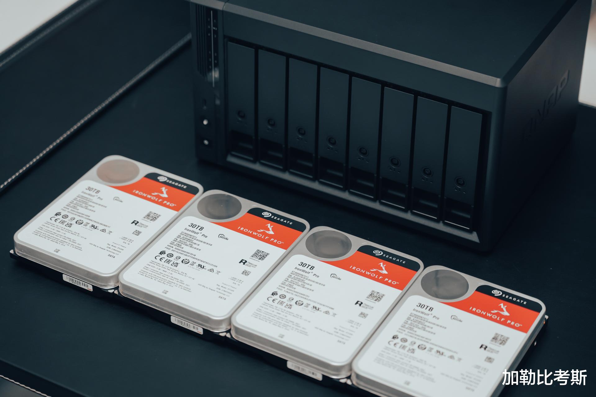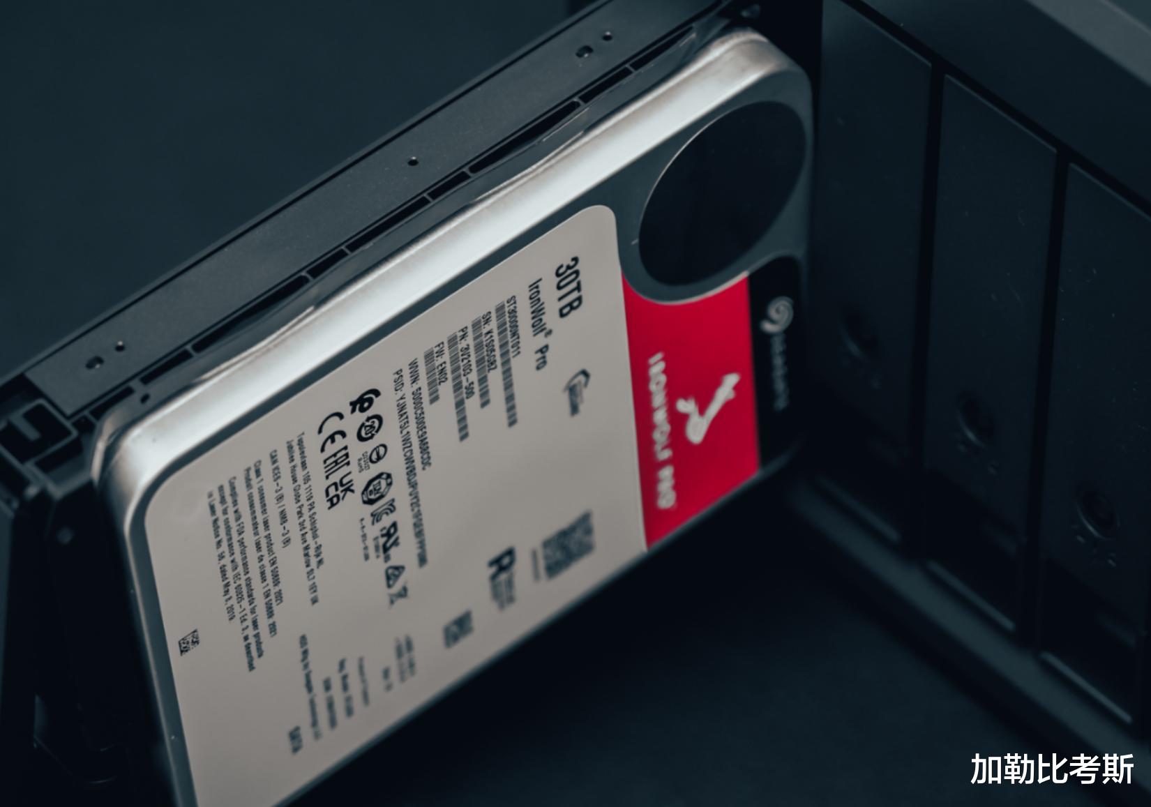 搞好了直接装硬盘,这次我们使用的是希捷酷狼Pro 30TB,希捷酷狼Pro 30TB硬盘采用热辅助磁记录(HAMR)技术,突破了传统的存储限制,达到了3TB单碟的容量。希捷酷狼Pro 30TB硬盘采用10片3TB碟片,被充氦金属壳体完全包裹,官方宣称MTBF平均故障间隔时间高达250万小时、年写入量达到了550TB。