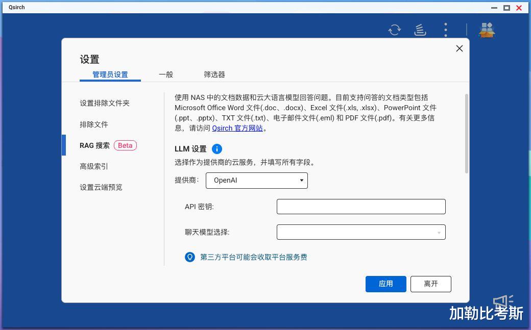 首先是Qsirch,它支持RAG 搜索,这个功能也叫“检索增强生成搜索”,是一种将信息检索与大模型生成结合起来的搜索方式。咱们可以选择OpenAI,deepseek这些。另外,QNAP即将发布 Qsirch 6.0,还支持本地 RAG搜索、多轮对话、LLM 本地化部署。