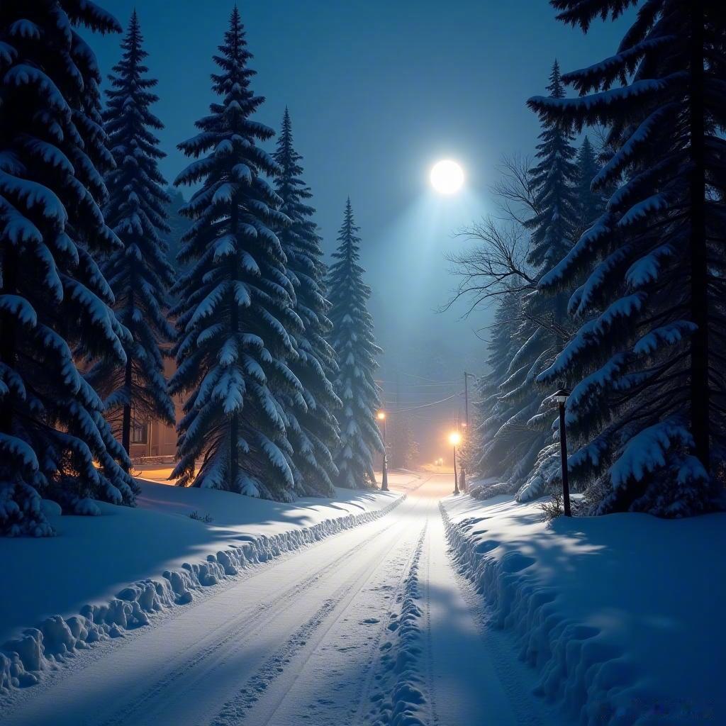 银装素裹的冬夜,愿你心中常有光明与温暖,万事如意,幸福常伴! 冬雪 光影艺术 (本内容由AI生成)