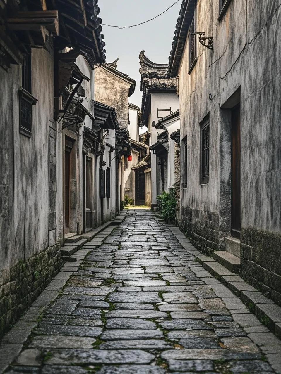 古巷幽深石板凉, 晨曦漫洒韵悠扬。 雕梁画栋时光刻, 老柳年轮记沧桑。