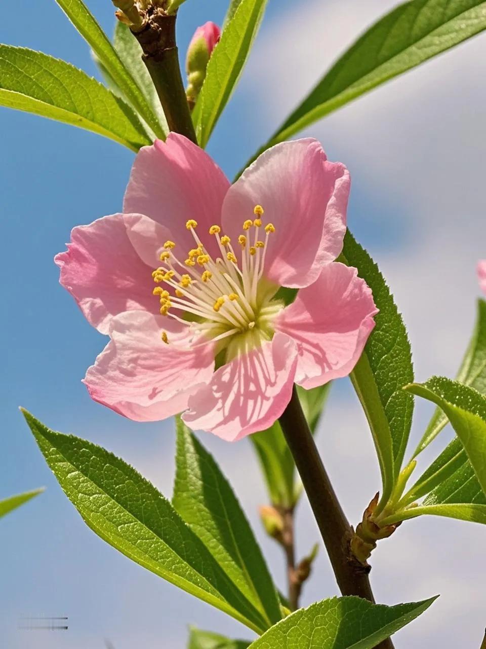 桃花依旧笑春风, 娇姿艳丽情丝融。 蝴蝶起舞心痴恋, 蜜蜂落入花蕊中。