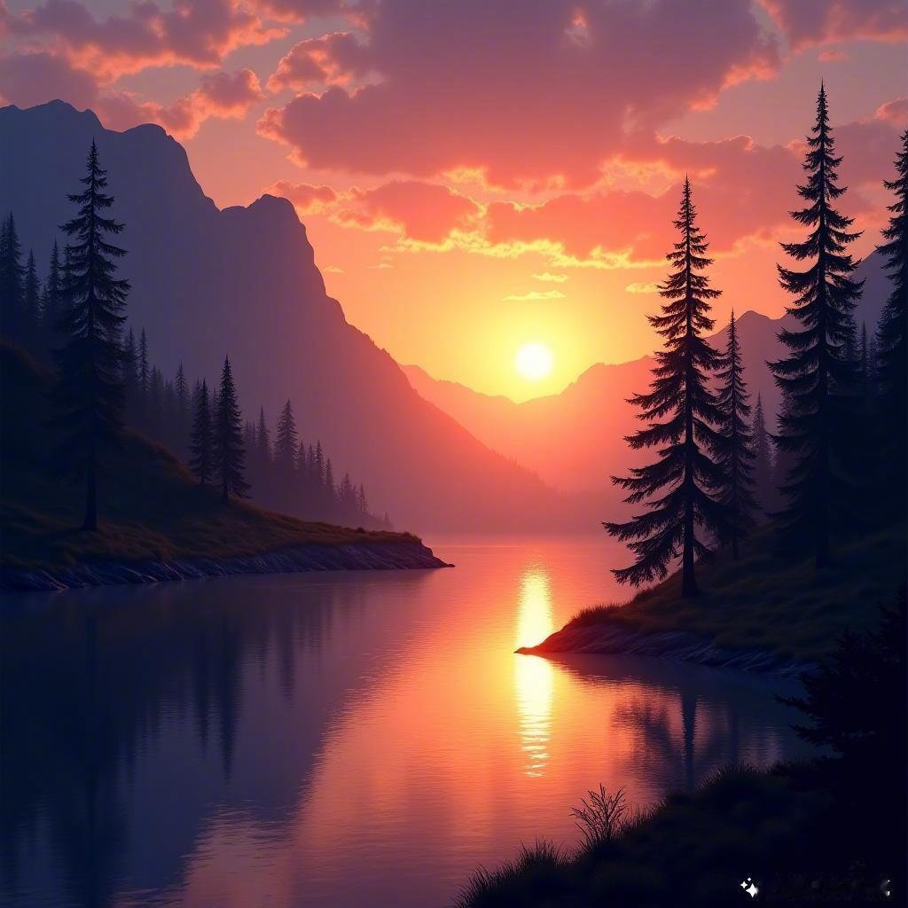 愿这幅风景如同落日余晖,带给你宁静与美好。愿你生活如湖水般平静,心灵如天空般绚烂! 风景 光影艺术 (本内容由AI生成)
