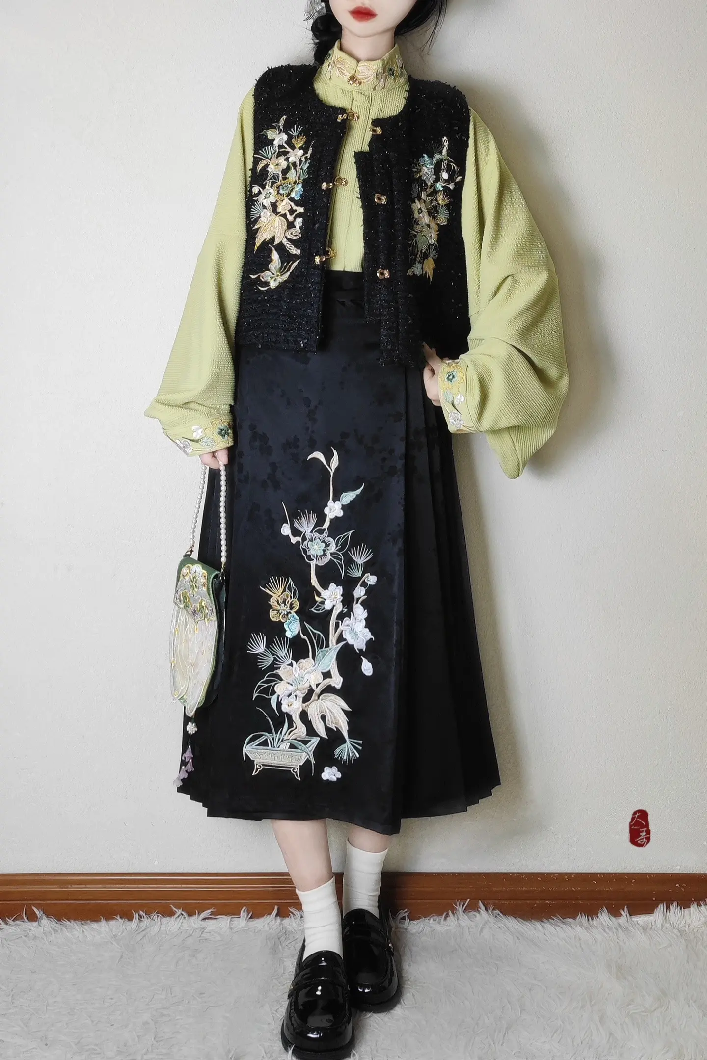 198🥕小香风汉元素~全绣花两色可选!