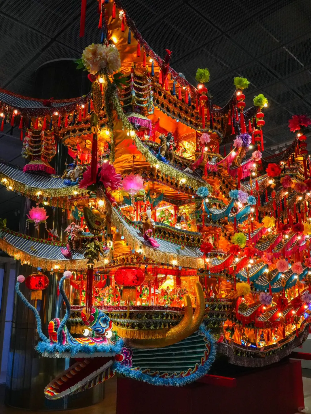 这层主要是传统工艺、戏剧、表演艺术厅,有鲁班锁、工艺展示馆、巨大凤冠、传统戏台等,展示了工艺的匠心技法,和戏曲表演的姹紫嫣红;