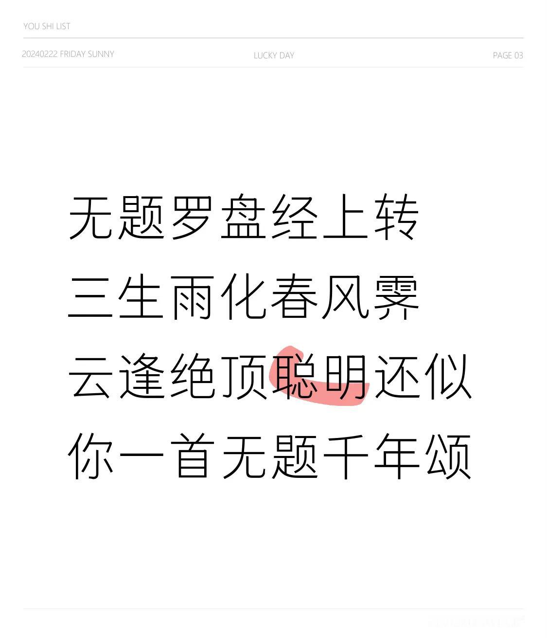 无题 罗盘经上转三生 雨化春风霁云逢 绝顶聪明还似你 一首无题千年颂