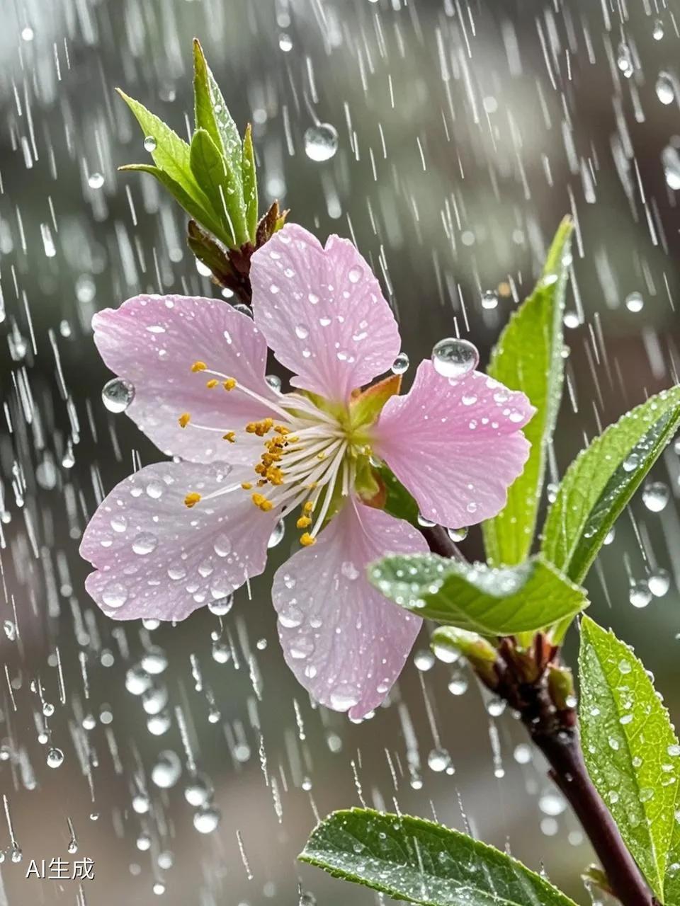 烟雨三月桃花红, 伊人独步觅香踪。 少女怀春从中笑, 帅哥回眸睹芳容。