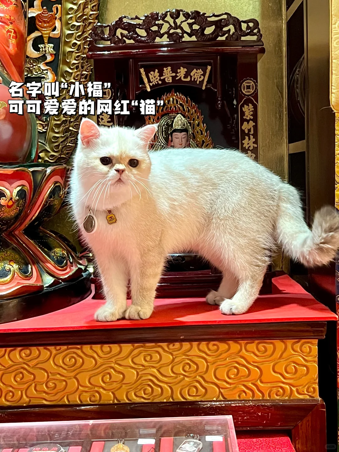 里面还有一只从小在寺庙长大的猫咪,叫“小福”