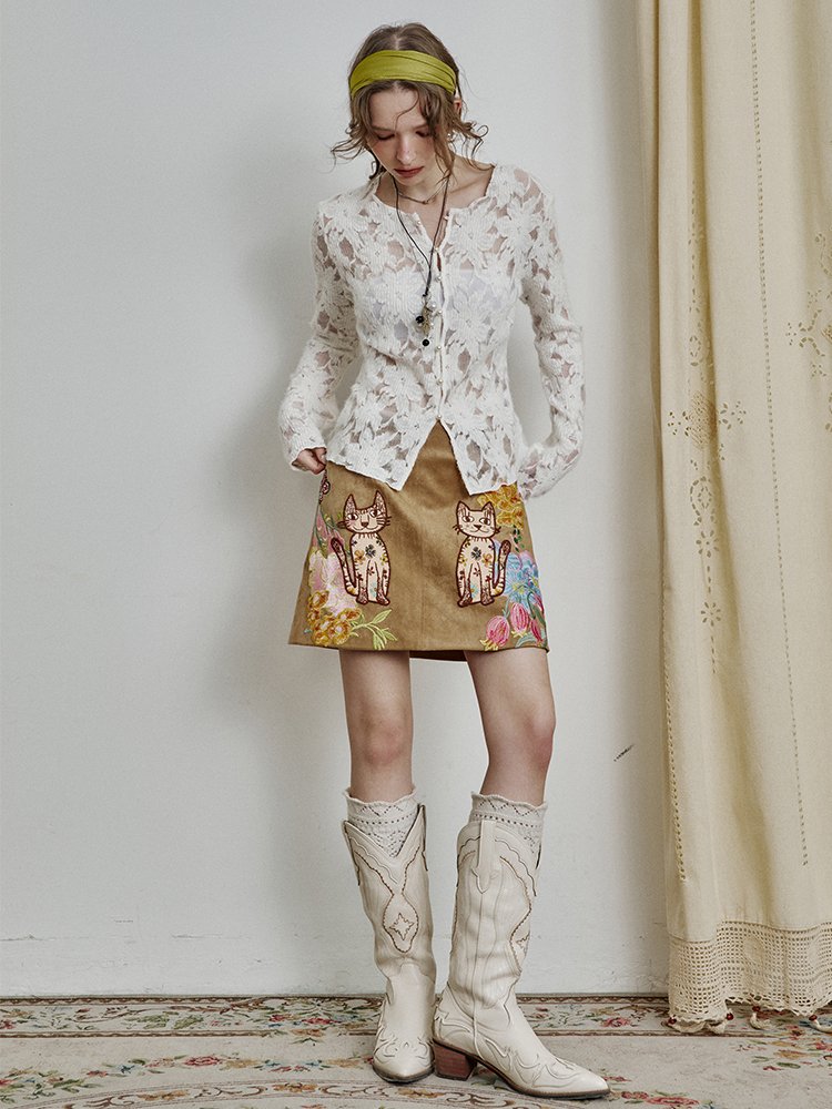 衣服门襟珍珠扣装饰,蕾丝材质 风格:百搭、优雅、浪漫、休闲 颜色:气质白色