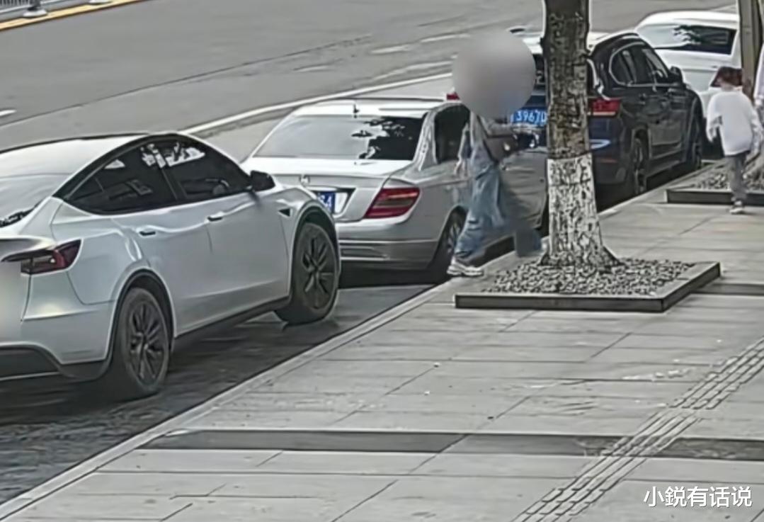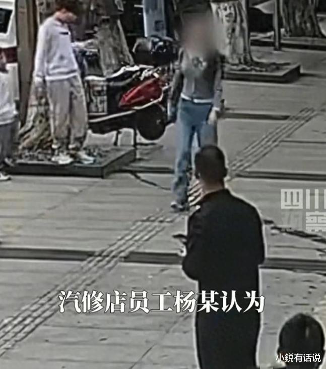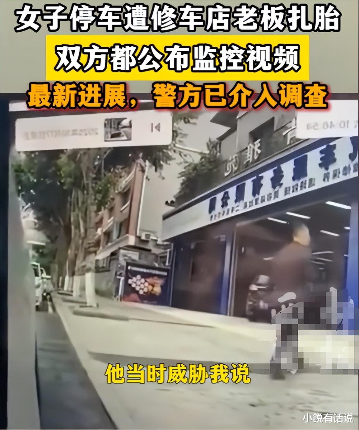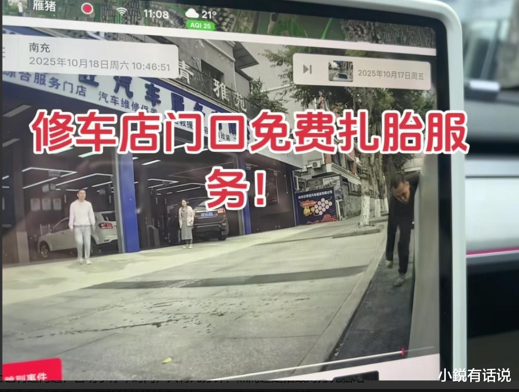 结果上车一看,发现轮胎也遭了,直接被人扎了个洞。回头调监控才发现,自己前脚刚走,那边店里的人就拎着工具上来动手了,整个过程拍得清清楚楚,手法熟得跟练过似的,扎得那叫一个干脆利落!