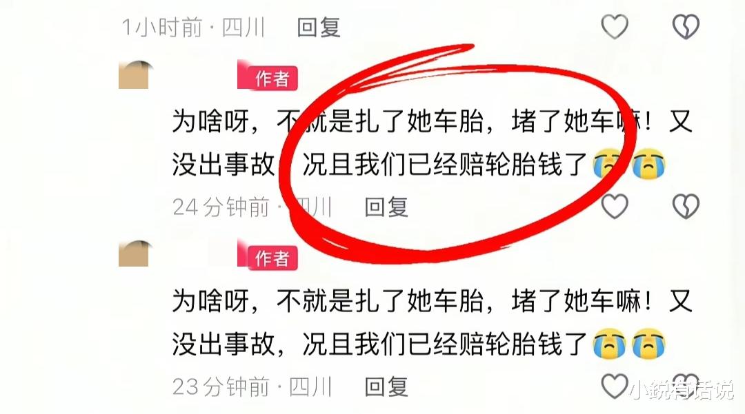 评论区更离谱,还有人说:“不就扎个胎、堵个车嘛,还不是赔了轮胎钱。”
