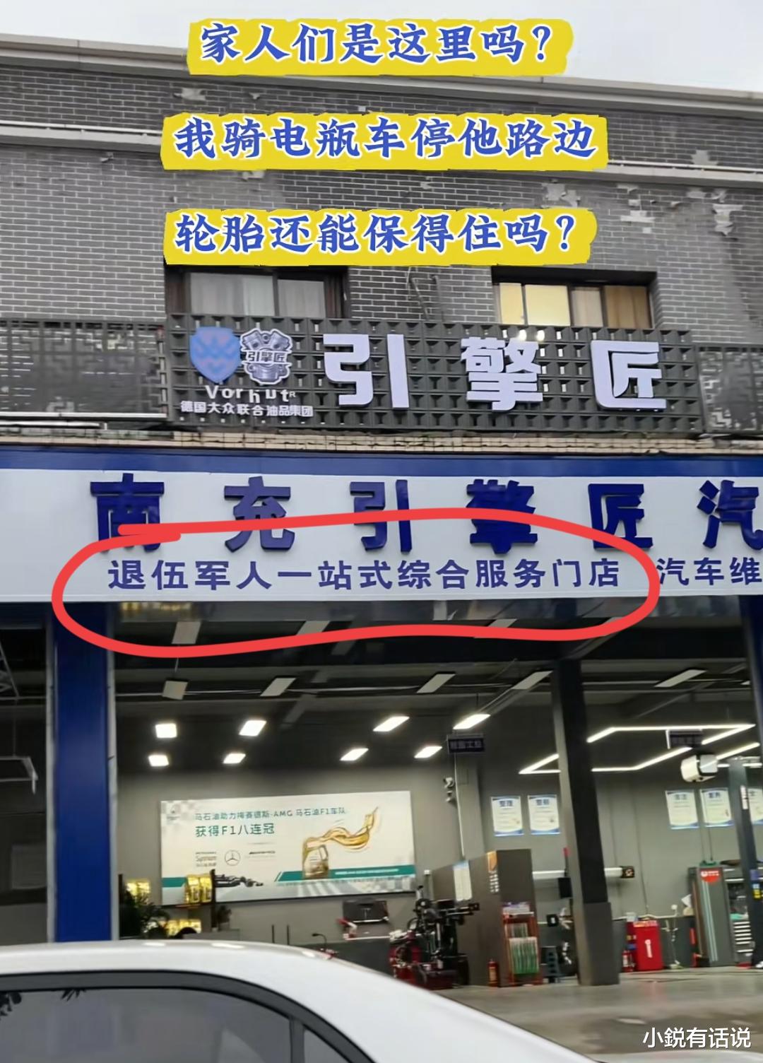 随后有网友开始深扒,发现这家汽修店才开两个月,门头还打着“退伍军人一站式综合服务”的招牌。更离谱的是,店门口的路缘石被私自改成了斜坡,原本的行道树也不见了,大家怀疑他们把公共绿化给铲了,自己用了。质疑声一下子更大了。