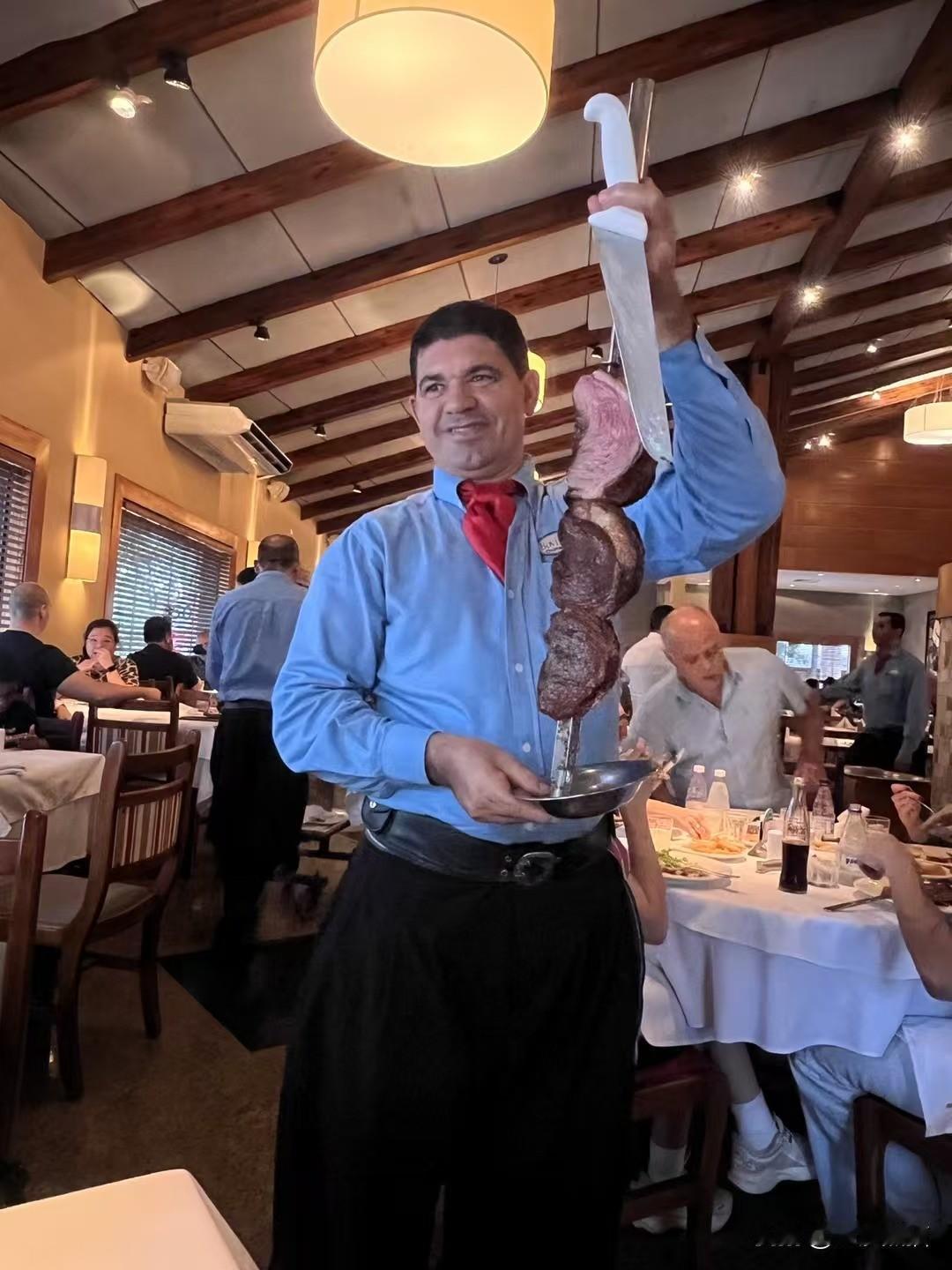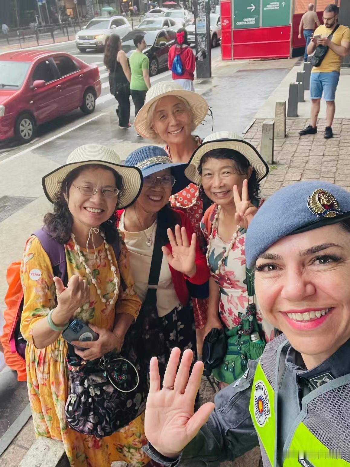 70岁后南美自助行旅游两个月(57) 2024.12.23-25:当天是在圣保罗最后一天,也是南美行的最后一天,早上就细雨霏霏,雨时大时小,景点也去不了,今天的任务就是购物,打车到小红书推荐的一个高档超市,没想到这个超市可以用人潮拥挤来形容,推着购物车在里面行走都困难,结账区排着长龙般的队伍,每辆购物车里货物都堆得小山一样,甚至还有1人有4辆购物车的货物,我想是因为巴西人庆祝圣诞节🎄🧑🎄的到来吧!但是有一点商场的营业员也非常多,非常敬业,我们拿着手机把要买的东西给他看,他就会在前面带路一直把我们带到需要的货物面前,我们通过手机翻译沟通,他们着装整洁规范,白衬衣打领带,还有穿西装的,彬彬有礼,有问必答,让人感觉购物得到的尊重。大家都买到满意的礼物。下午回到住地,晚上9点打的🚖去机场,24号夜里1点多的飞机,圣保罗飞埃塞俄比亚首都亚的斯亚贝巴,然后转机飞成都,航程大约25小时。25日下午顺利回到成都。图7在圣保罗最热闹的保利斯塔大街女警察主动要求和我们合影 。图8我们在网红巴西烤肉店吃的烤肉。两个月艰辛而且充满挑战的南美自由行圆满结束了,有累有困难更有开心和快乐!多年的梦想成真,为我们有勇气70多岁到南美自由行顺利归来感到非常自豪!没有遗憾了! 成都市老年人协会摄影专委会 图文原创:毛小琦 组稿编辑:唐婉山 帅黎明