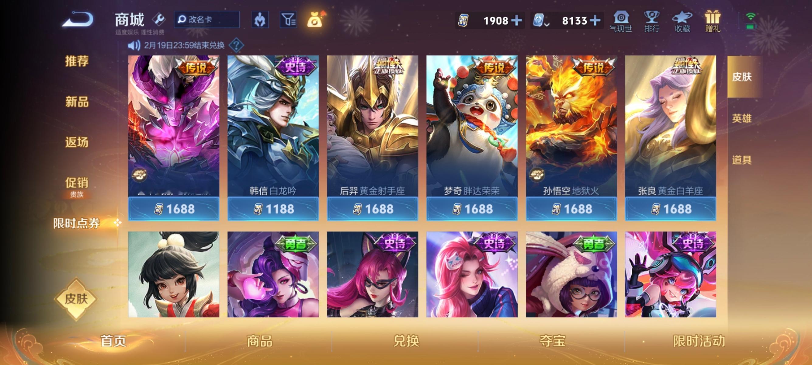 又免费得了两个传说皮肤,小蛇糕130抽后裔黄金圣斗士,2898限时点券兑换了云樱