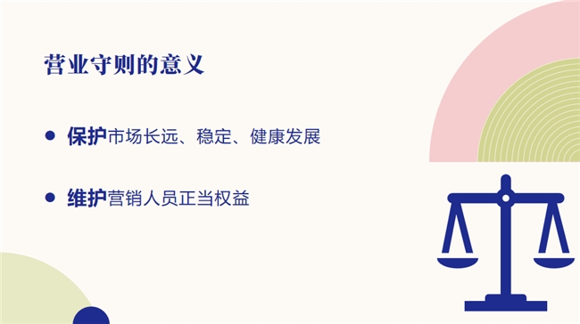 营业守则的本质是保护——既保护市场的整体稳健,也维护每一位合规经营者的合法权益。正如一片森林需要有序生长,营业守则如同企业的“规则之伞”,保障每一位营销人员在规范中茁壮成长,远离不良竞争与违规风险的侵扰。只有根基正直、经营规范,才能在未来发展中屹立不倒,成就长远事业。