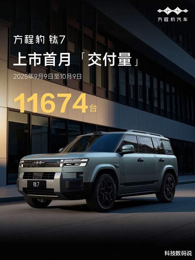 比亚迪旗下专业个性化品牌方程豹汽车今日宣布,其最新力作——方程豹钛7在上市首个完整销售月内,实现了11,674台的惊人交付量。这一成绩不仅远超市场预期,更一举刷新了方程豹品牌自成立以来的新车型首月交付纪录,彰显出其在新能源硬派SUV市场的强大产品力与品牌号召力。