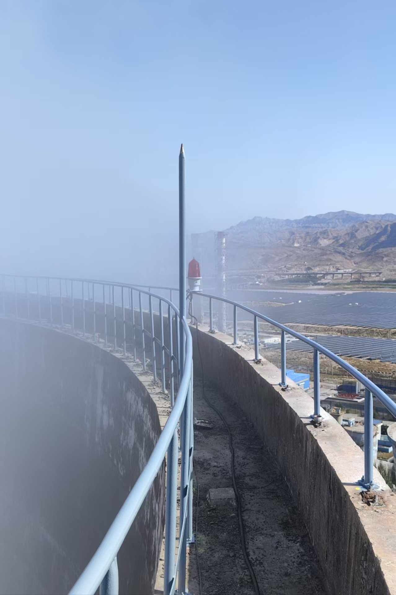 3.整体更换: 拆除破损的避雷针,避免施工中部件坠落损坏冷却塔,拆除后对固定部位进行清理、防腐; 按设计高度制作新避雷针,将避雷针与固定支架满焊连接,焊接长度符合规范,焊疤打磨平整后做防腐处理; 新避雷针安装后,用水平仪校正垂直度,确保接闪器垂直、牢固,无晃动、倾斜。