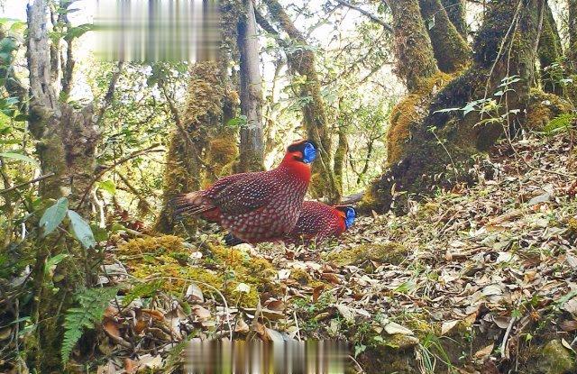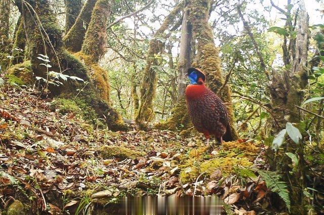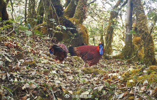 [保山龙陵:#红腹角雉跳彩裙舞求偶#]近日,云南省保山市龙陵小黑山省级自然保护区工作人员在收集整理红外相机数据时,欣喜地发现珍稀动物红腹角雉“求偶炫耀”的珍贵影像。“不同鸟类的‘求偶炫耀’方式也不尽相同。雄性红腹角雉在繁殖期,主要通过鸣叫、体色显示、姿态炫耀、舞蹈等行为来吸引雌性,从而实现其配对及繁育后代过程。”大理大学东喜玛拉雅研究院实习研究员房以好说。红腹角雉喜欢单独活动,生性胆小机警,常隐匿在原始丛林间或茂密的树上。龙陵小黑山省级自然保护区管护局高级工程师冯思勤说:“目前保护区已布设了红外相机监测点50余处,像这样拍到红腹角雉的独特‘舞蹈求偶’情况并不多见,在野外的遇见率几乎是微乎其微。”红腹角雉是绿孔雀的“远房亲戚”,同属鸡形目雉科家族。其也是中国最美的鸟类之一,在我国主要分布于云南、西藏、贵州等地,是国家二级重点保护野生动物,被列入《中国生物多样性红色名录——脊椎动物卷》近危(NT)物种。