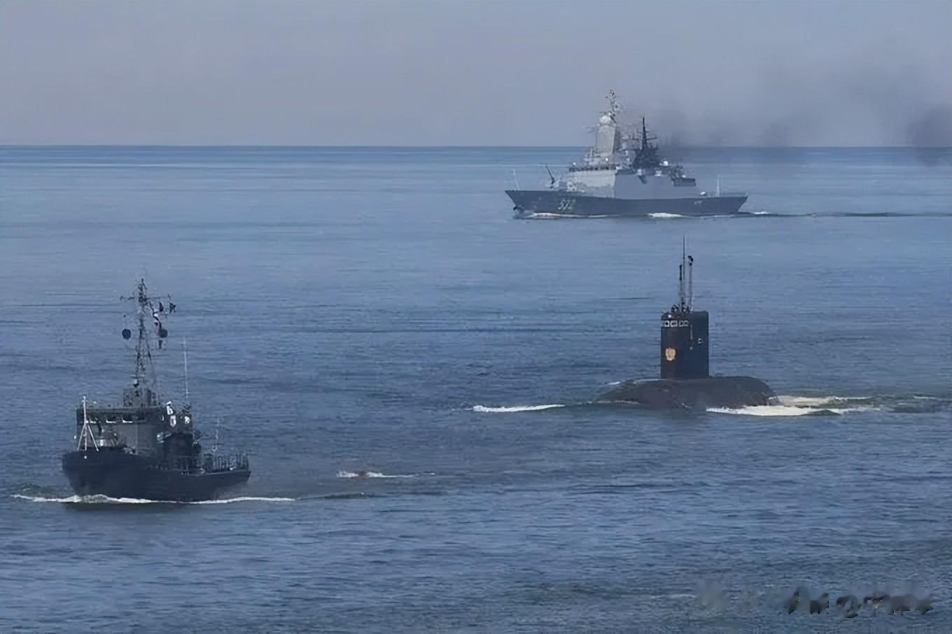 油轮附近,还有几艘俄罗斯的护航军舰。
