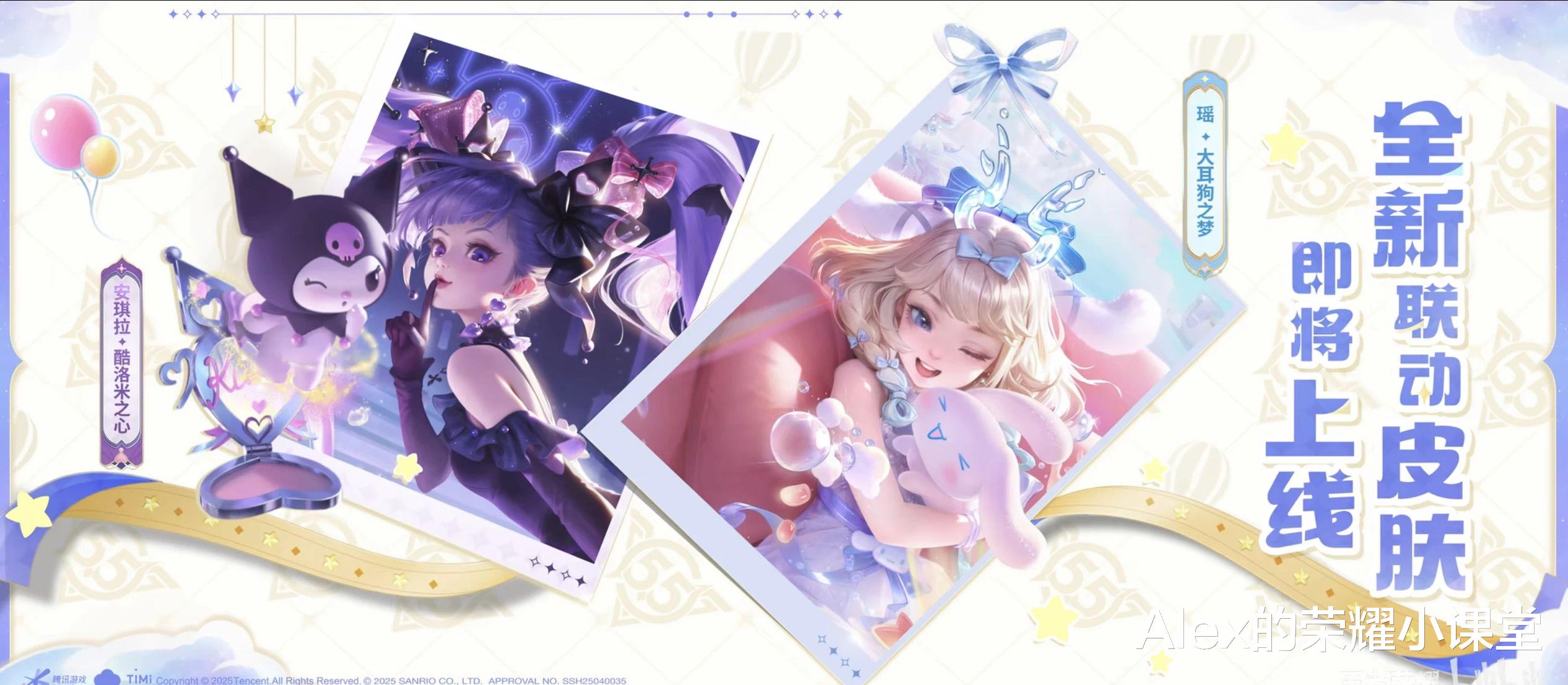 瑶-大耳狗之梦和安琪拉-酷洛米之心,这两款三丽鸥联动皮肤将于朋友节期间上线,目前还没有公布皮肤品质和技能特效。