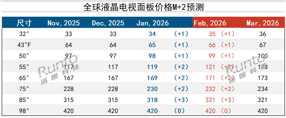 2026年1月液晶电视面板市场特点及2026年2月预测