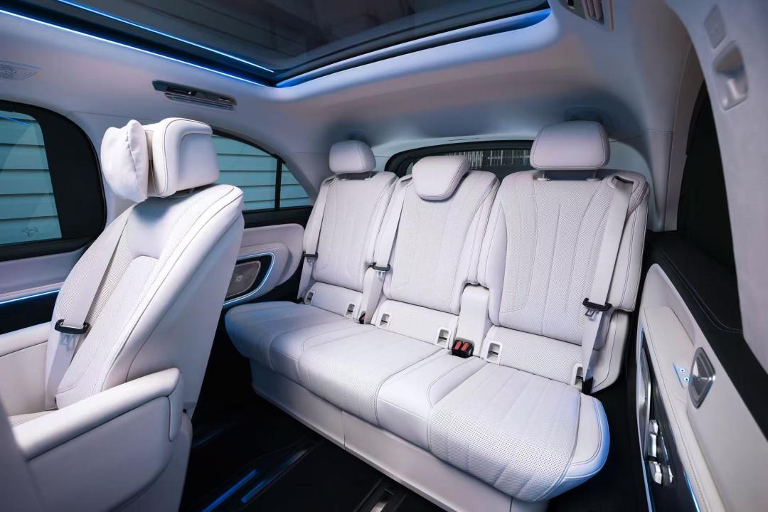 三排座椅电动调节、座椅通风/加热/按摩、二排VIP座椅、中控台双温控冷暖箱、31.3英寸8K全景屏、从B柱延伸到车尾带遮阳帘的全景天幕。