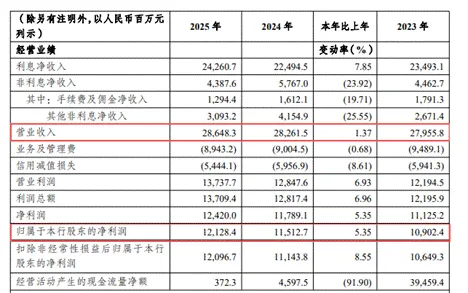 具体来看,该行坚持建“三种新动能”战略任务,服务重庆本土经济,也持续加大信贷投放力度。2025年全年贷款总额实现11.62%的增长,带动利息净收入实现242.61亿元,同比增长7.85%,贡献了全行约85%的营业收入。