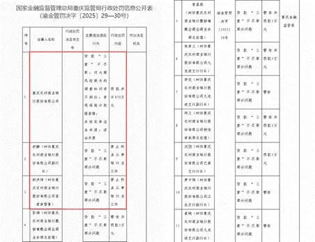 2025年,渝农商行及其分行机构收到的罚单数量是近3年来最多的,暴露出其在合规管理方面存在着明显的漏洞。