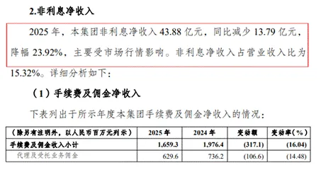 但是,该行非利息净收入却出现大幅下滑,全年收入仅43.88亿元,同比减少23.92%。其中,手续费及佣金净收入同比减少3.18亿元,降幅达19.71%。投资收益及公允价值变动净损益29.93亿元,同比减少8.55亿元。